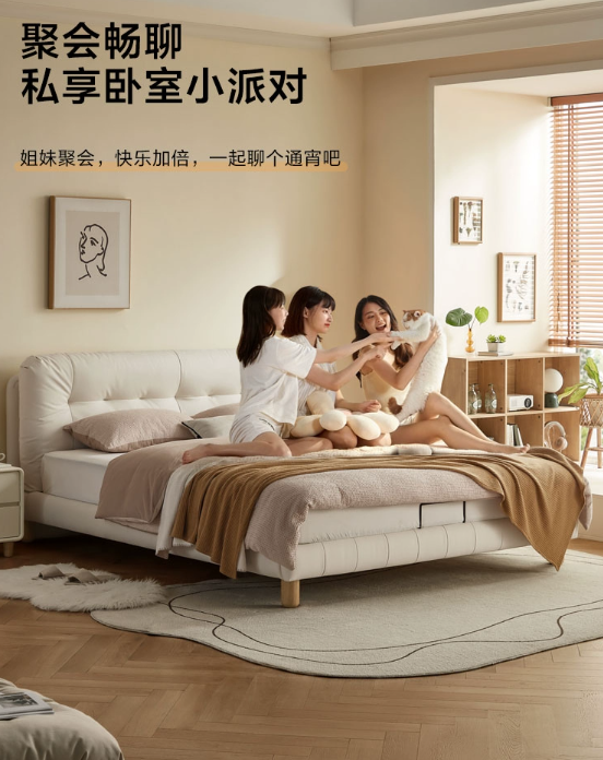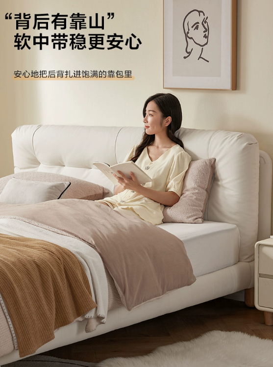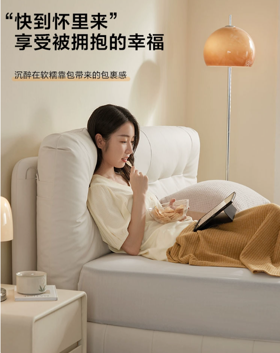 柔韧猫爪皮,厚实耐用不怕抓,无惧猫猫抓挠掉皮,慵懒的周末和猫猫一起赖个床,享受周末快乐时光,三段式设计的靠背,柔弹支撑,腰背更舒服,长时间倚靠着读书追剧都不觉得累。齐边床身设计,更省空间,高挑床身,床下可放小型置物盒。果然,又是省空间的一把好手!