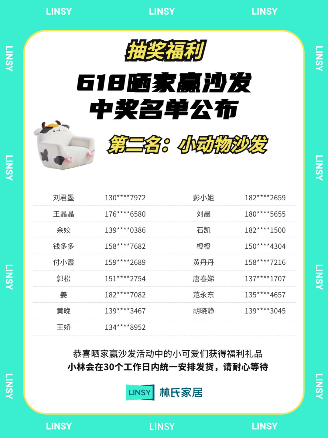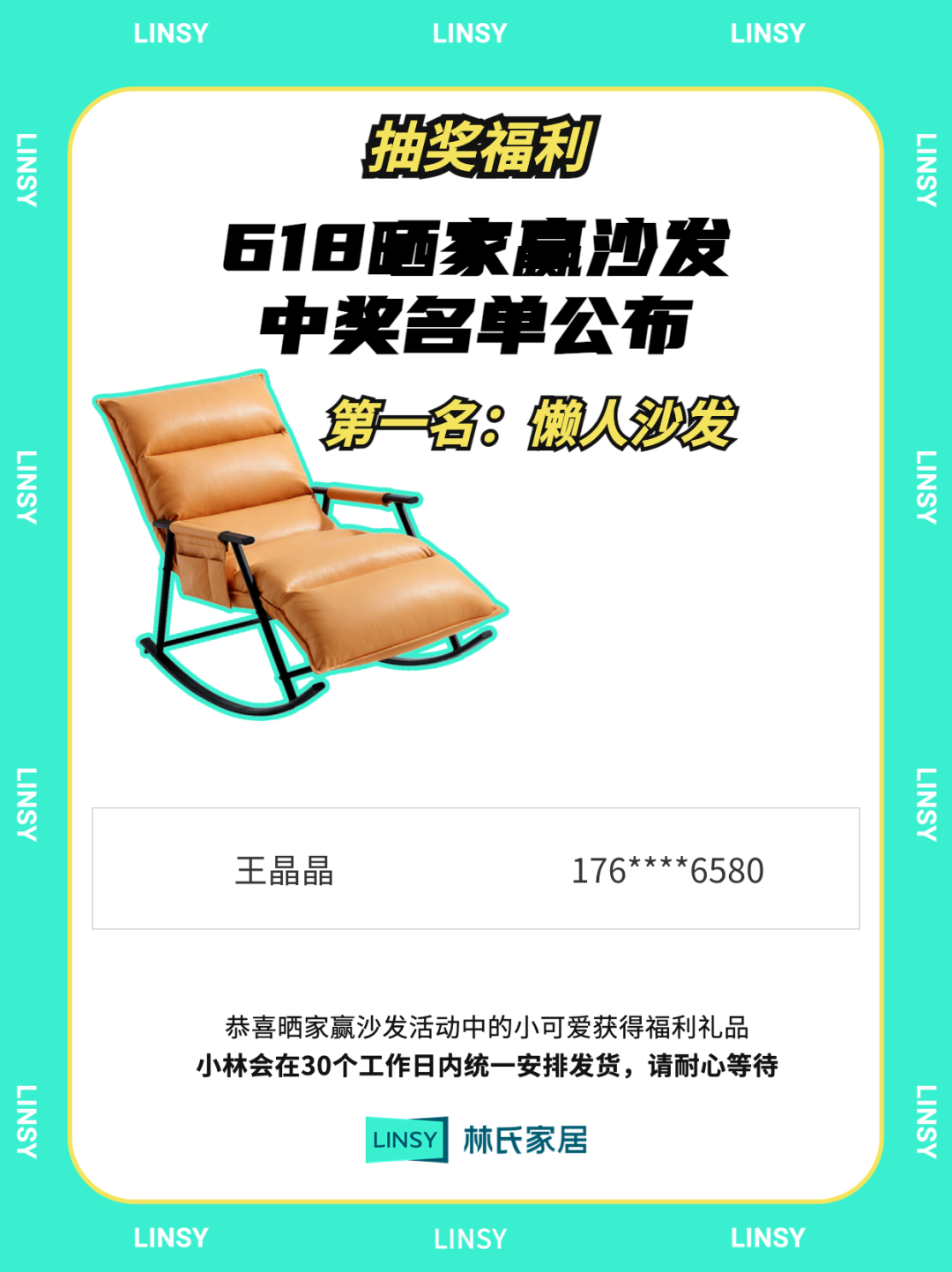 618晒家赢沙发活动中奖名单公布