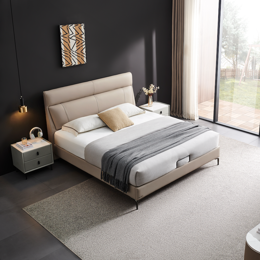 R335-A这款床的面料、设计等各方面性能都相当突出,微倾靠背的设计,追剧看书久靠都不易累,生态云皮的面料更懂你的细腻需求,日常画笔污渍轻松一擦就干净,快节奏的社会下拥有这样懒人式的打理方式,省时省力又省心,是谁的DNA动了我不说~