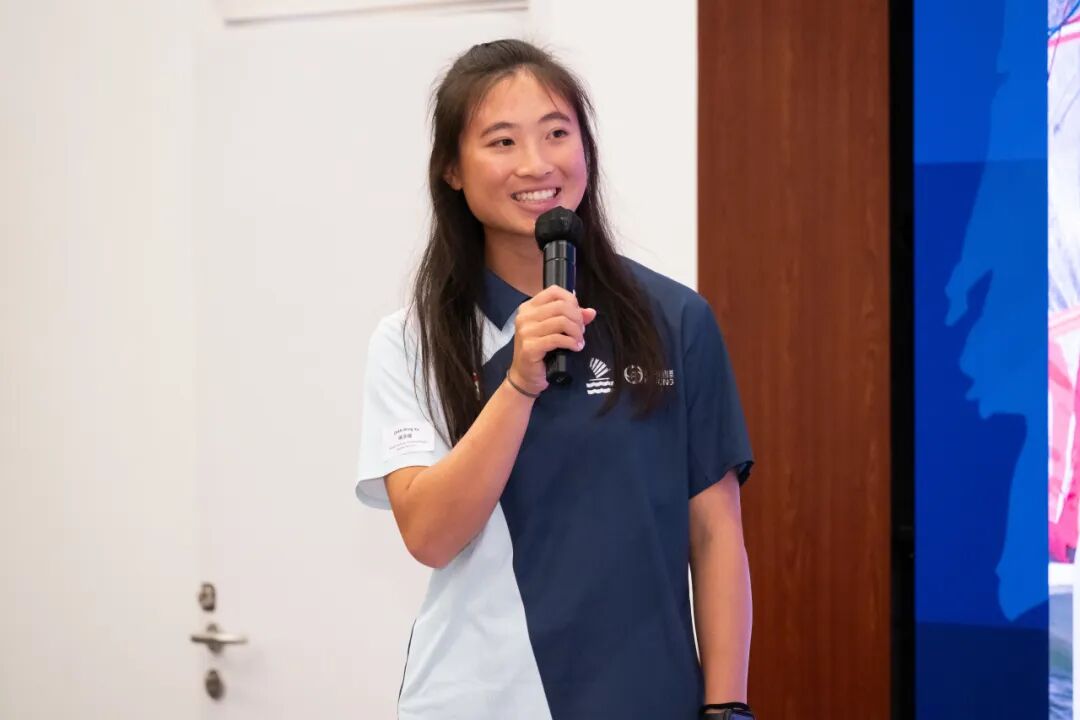 A:她是一位非常自律的运动员,能够平衡学业与训练。大家都知道,滑浪风帆的训练相当刻苦,几乎所有学生的假期,包括周六、周日及所有学校假期、暑假、圣诞节和新年,都是训练日。我们对训练的要求也非常高,必须达到九成或以上的标准,因此能够平衡学业和训练并不容易,而她做到了,这点非常了不起。