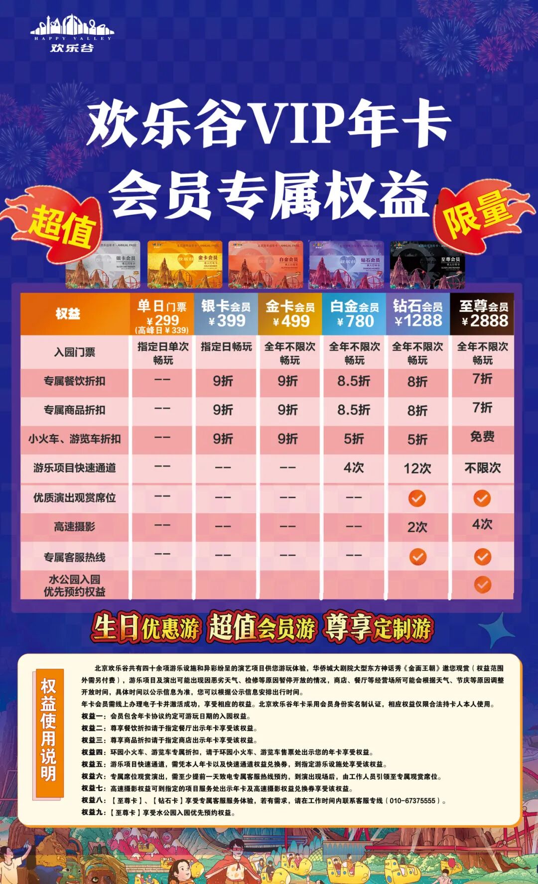*本年卡仅限在北京欢乐谷陆公园使用(不包含玛雅海滩水公园)