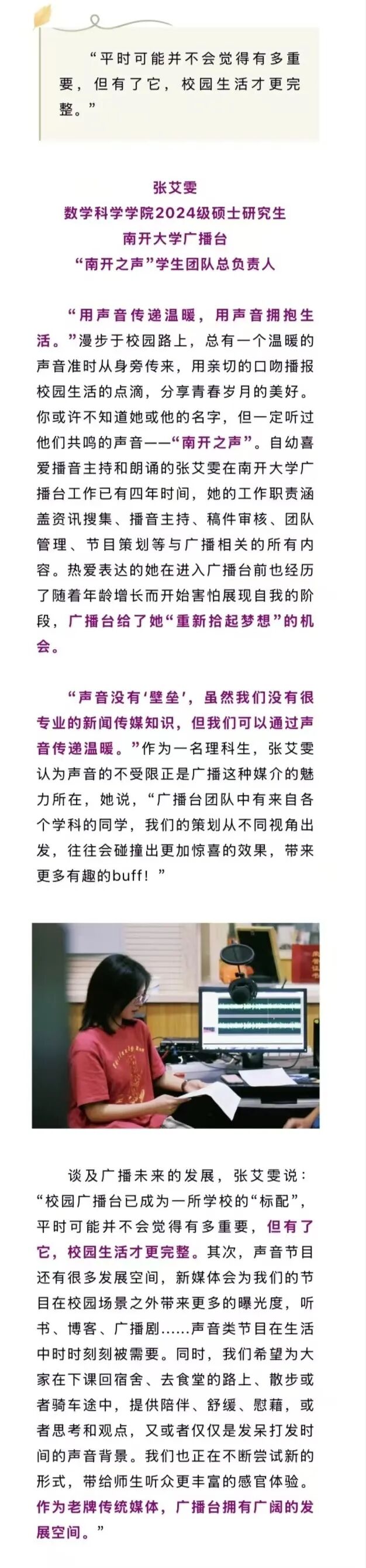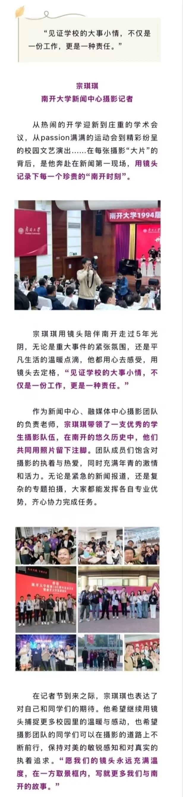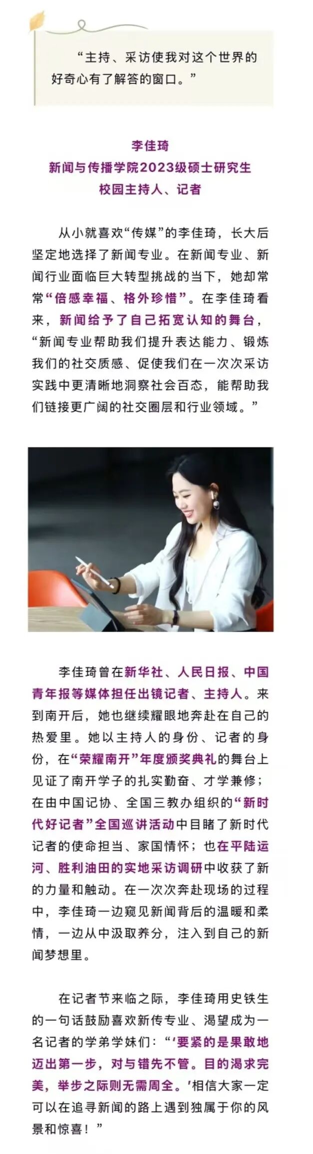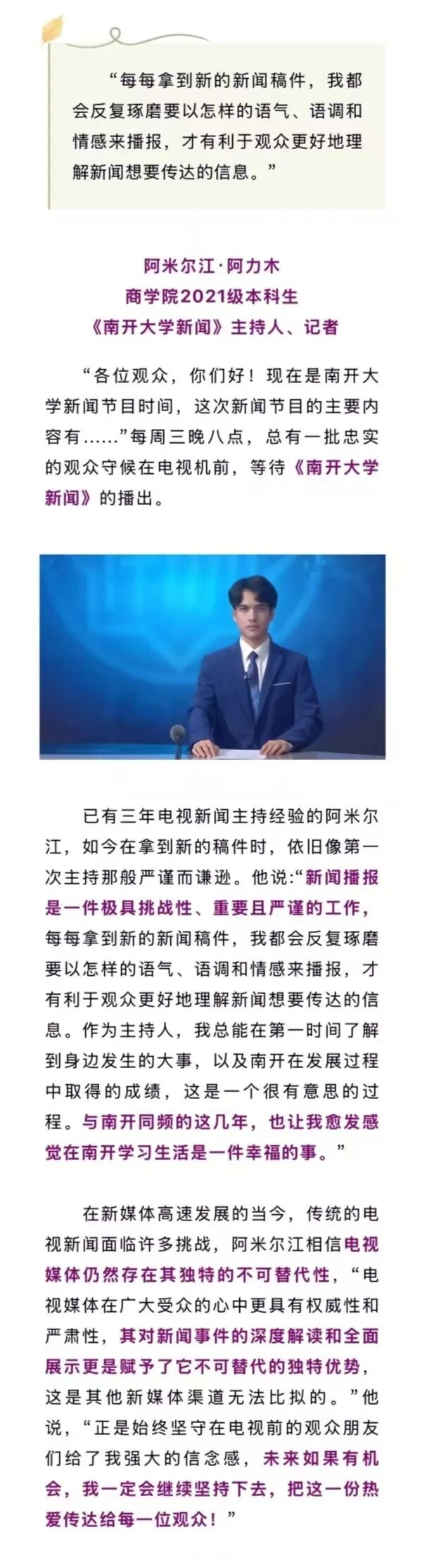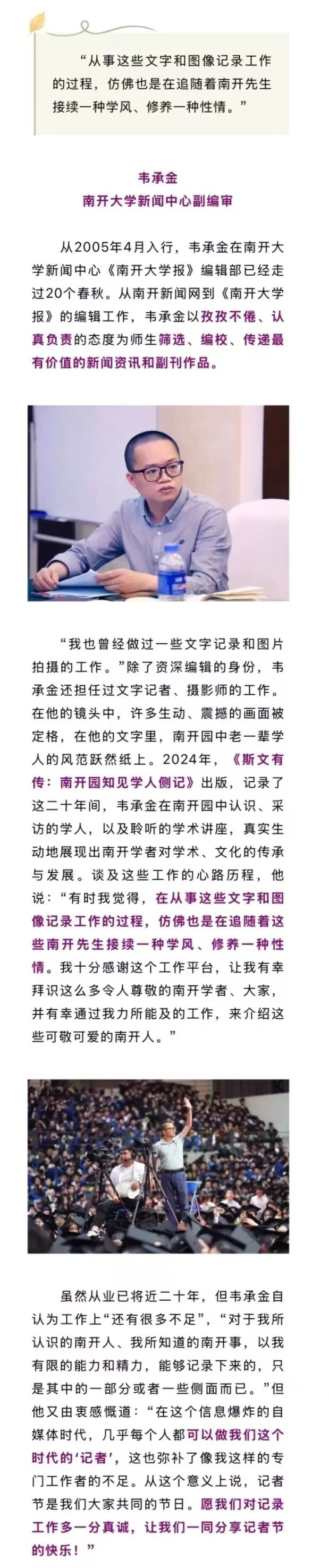 终于有一个机会上“表白墙”。在学校的时候,我给南开新闻网供过稿,第一次和新闻工作“触电”;离开学校后,我常常从南开新闻里扒线索、找采访对象,日常采访也没少让“亲老师”“亲同学”帮忙,你们总在默默支持我的工作。非常感谢母校和老师、同学们的支持!祝大家节日快乐,日薪越亿。