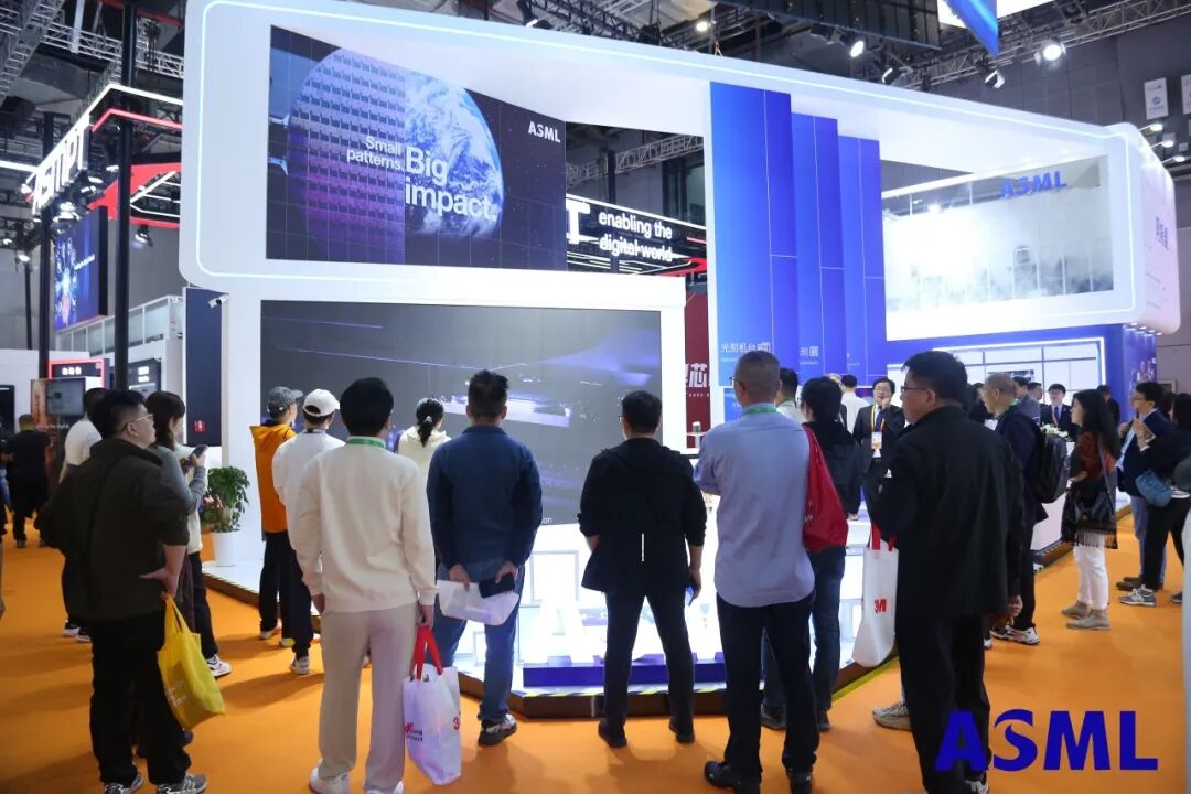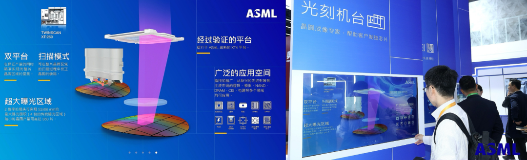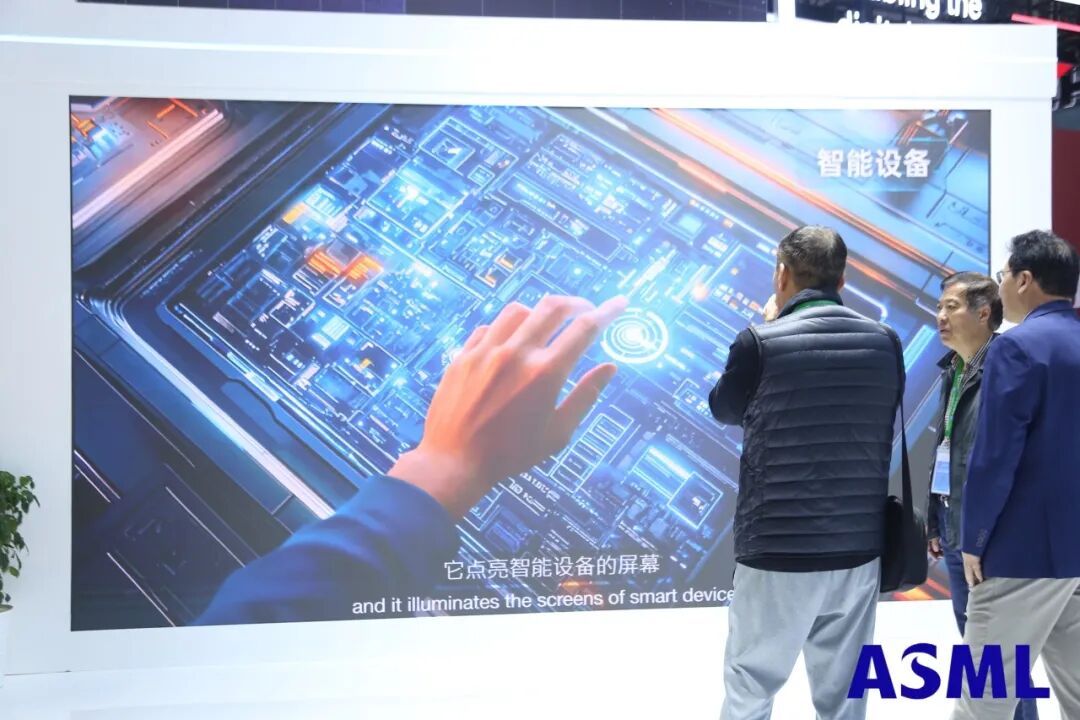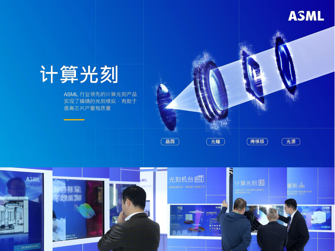ASML运用三块互动式屏幕,为大家重点展示了“铁三角”全景光刻解决方案下的产品和技术,其中包括光刻设备、电子束量测设备以及计算光刻技术。