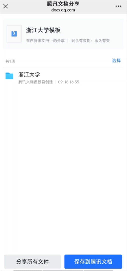 同学们在腾讯文档中即可一键保存「浙江大学模板包」,并可以随时编辑使用。