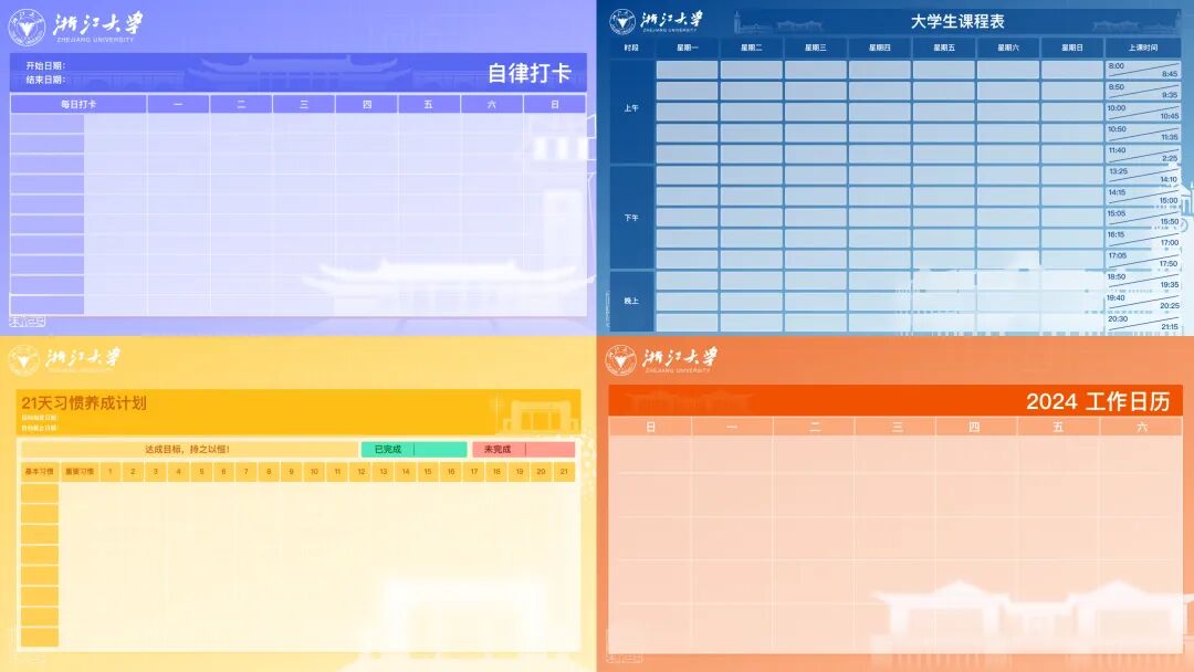 浙江大学 定制计划表模板包