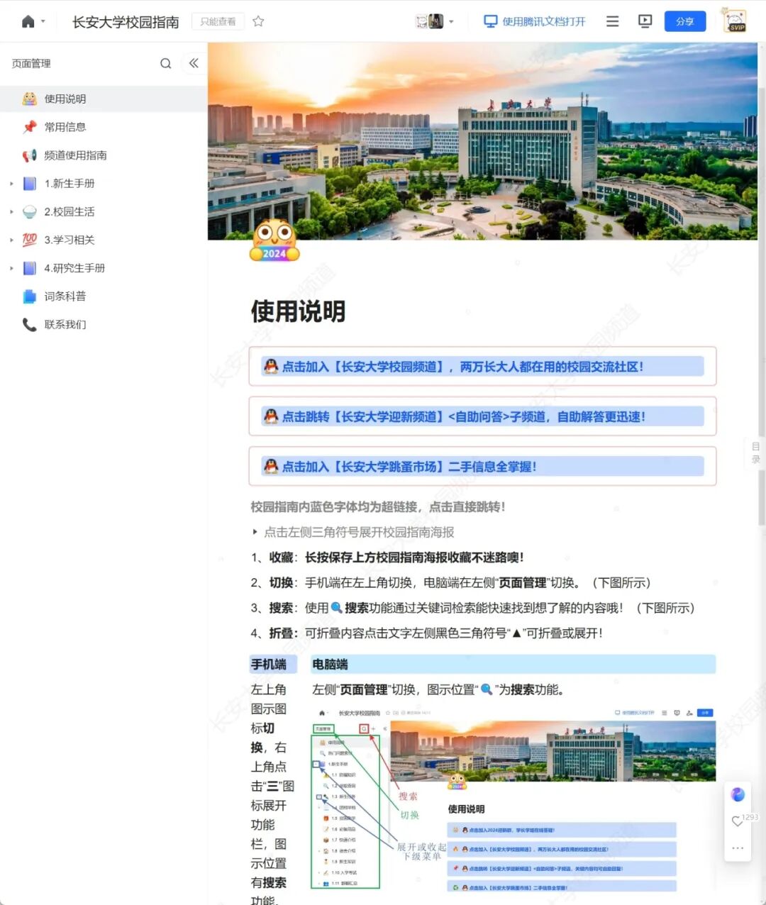 长安大学借助智能文档,精心打造了一份「校园指南」,里面汇集了众多新生必备的资讯,涵盖了新生手册、校园攻略以及其他学习相关的实用信息等等。