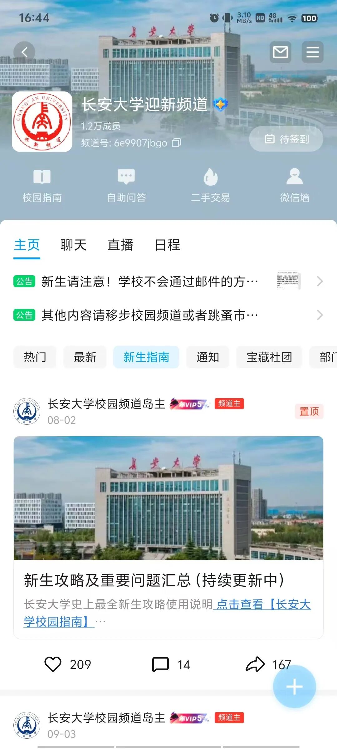 同时,在「校园指南」中,置顶「长安大学校园频道」与「长安大学迎新频道」的快捷入口,新生们只需点击链接即可直接加入腾讯频道,快速融入学校这个大家庭,找到自己的兴趣组织与同好搭子。