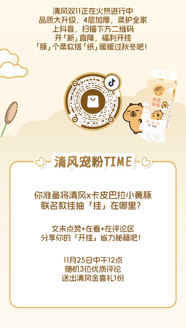 摘要:欢迎卡皮巴拉小黄豚成为清风家人,一起豚满柔软