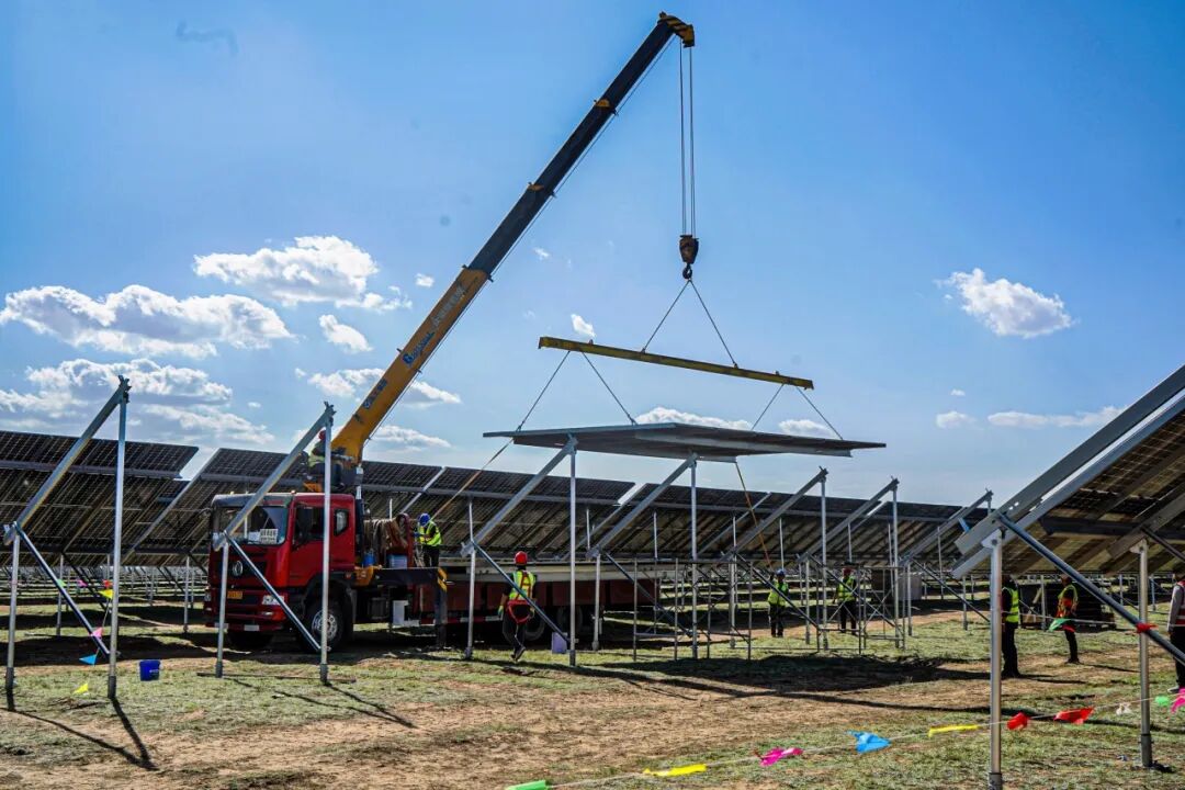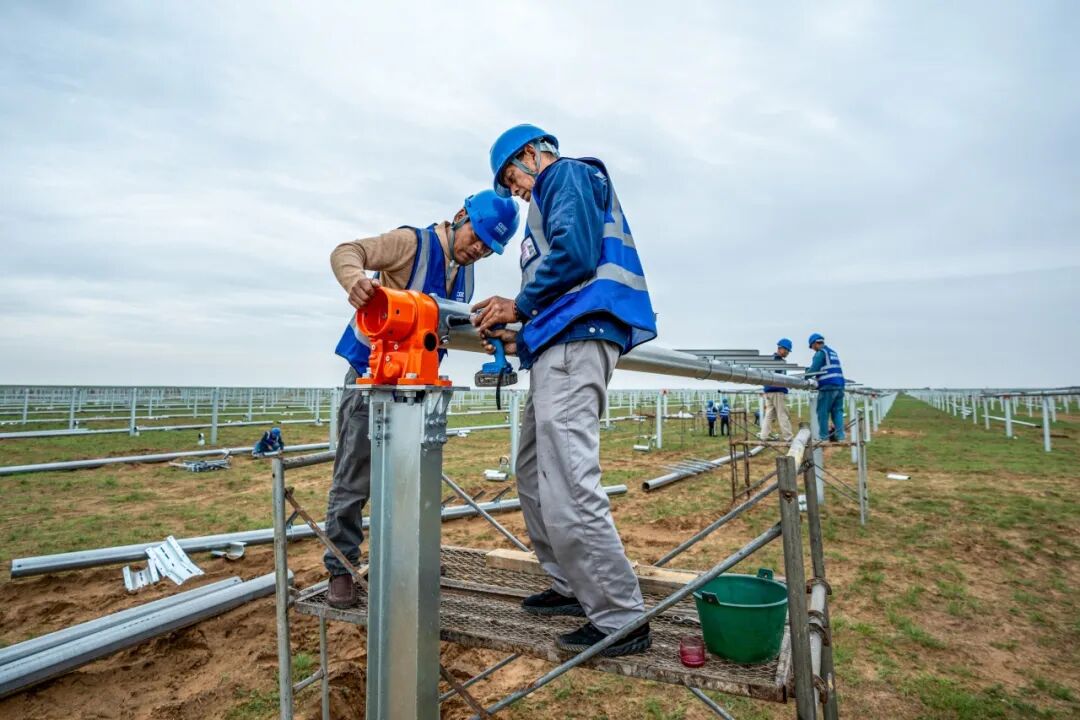 在项目建设期,国电电力提出“火光打捆、联合送出、综合示范、技术引领”的顶层思路,以“突出科技创新,提升科技含量,全力争创国家优质工程金质奖”为目标,从勘察、设计、建设、运营、维护多个环节做到生态优先、产业带动、效益多重、绿色低碳、安全稳定,形成“五新应用、五个示范、八项优化”的鲜明特点,为我国“沙戈荒”地区大型光伏项目建设积累了宝贵经验。