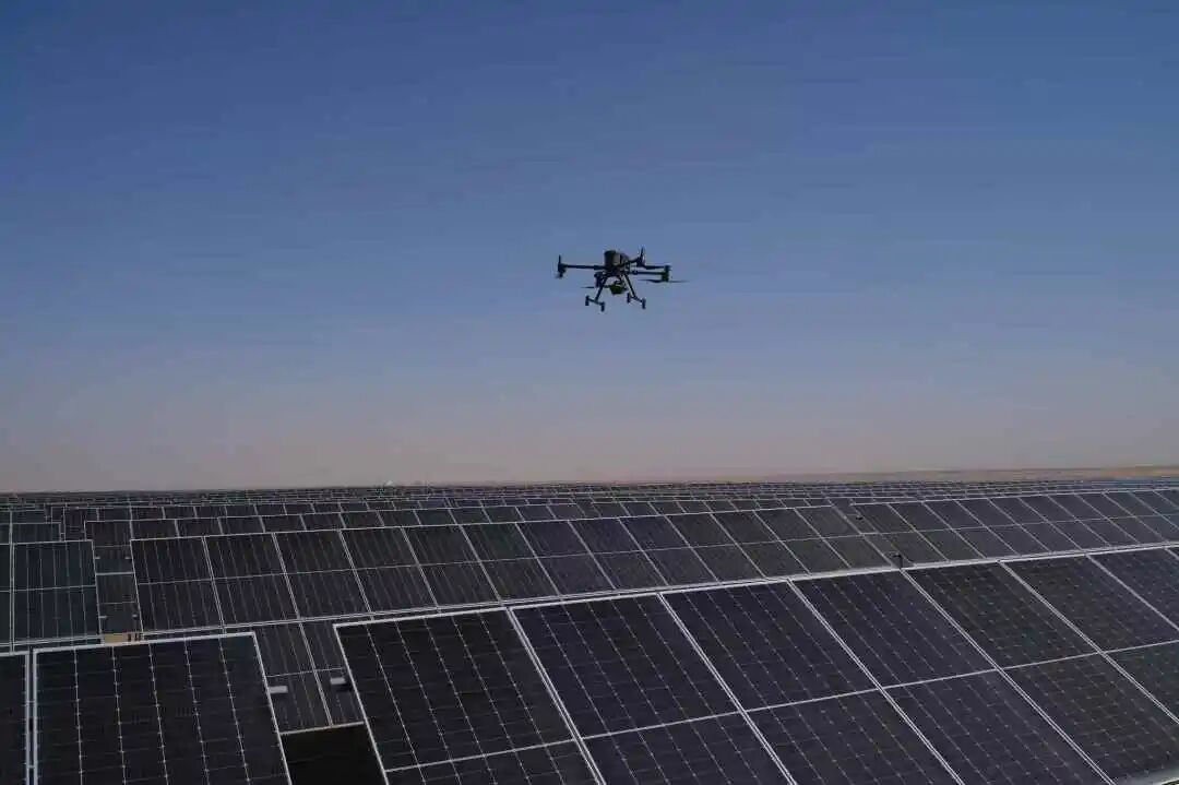 蓝海光伏电站应用智慧运维系统,构建光伏能效闭环的智慧运维体系,可提高设备智慧化管理水平,采用“无人机+无人车”智能太阳能板清洁装置,预期可实现全天候光伏组件自动清洗,减少80%以上人力,每年节约人力成本约200万元,节水量达90%以上;高标准建设运维中心一体化管控系统,提升基地电力产业数字化智能化绿色化水平和能力。