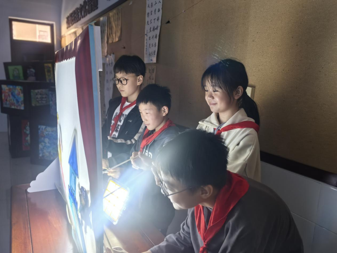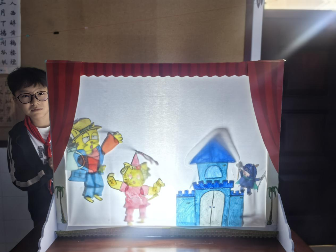 ▲英语皮影戏社团,通过师生共编剧本、因材施教做道具和百花齐放演皮影等活动,用英语讲好中国故事,用优秀传统文化浸润孩子心灵