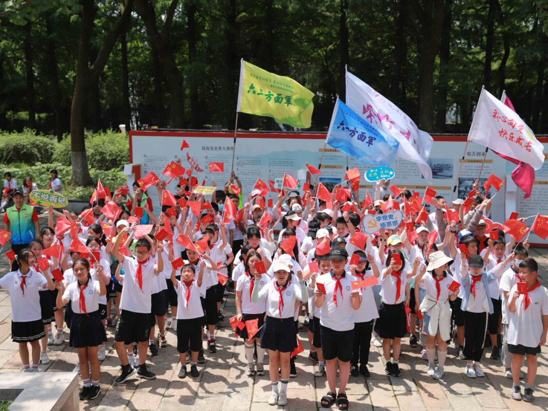 倡导家长利用假期带领孩子打卡国内著名国防教育场馆,开展“重走红色足迹,传承红色基因”昆山市革命遗址遗迹红色走访活动,足迹遍及巴城、千灯、周庄、锦溪、淀山湖等镇,并根据走访编写了《昆山市革命遗址遗迹录》。