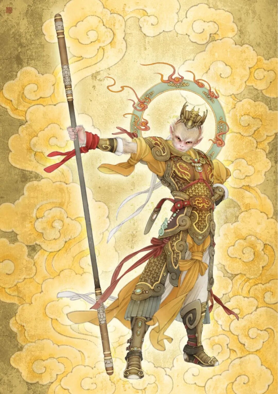 “蛇呈丰稔”票面整体色调以红色和黄色为主,蛇身通体金黄,彰显新春的喜庆吉祥,传递传统文化与民间审美意蕴。在创作过程中,张旺巧妙地将敦煌壁画的元素融入到色彩和线条设计中。他介绍:“敦煌艺术是文化包容性的象征。生肖邮票以敦煌纹样为灵感来源,意在致敬中华文明源远流长、兼容并包之美。”