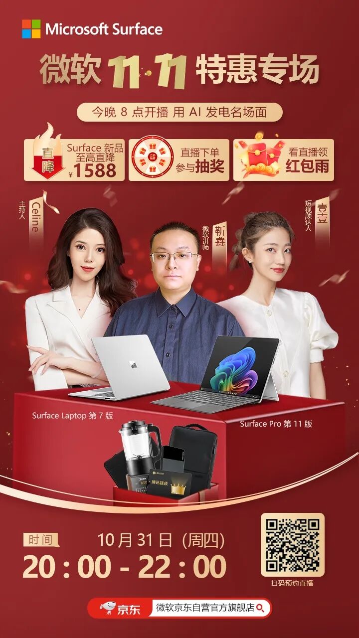 更多惊喜关注今晚 20:00 点微软京东自营直播间