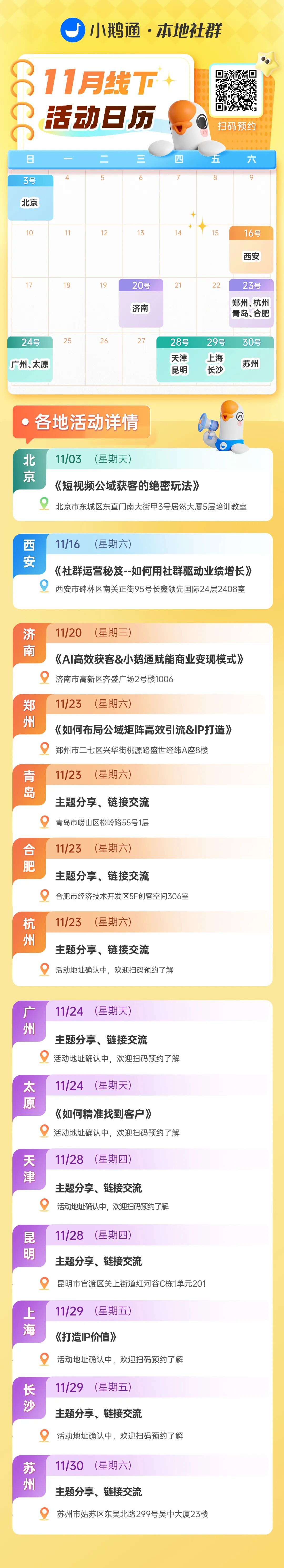 最重要的一点是,无论您是否是小鹅通的客户,都能到线下活动中一起进行业务交流、资源链接!超一万人已加入的小鹅通本地社群,就等你啦!