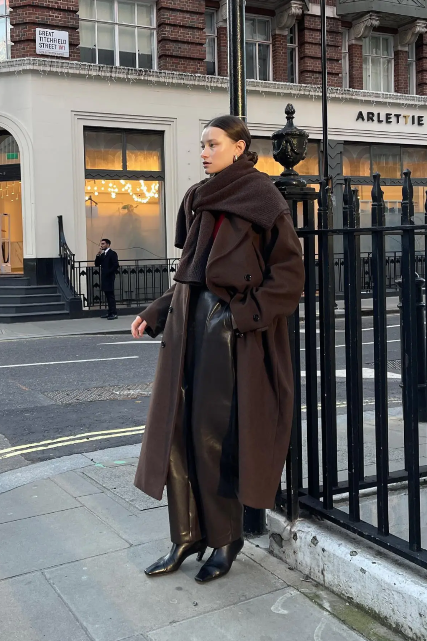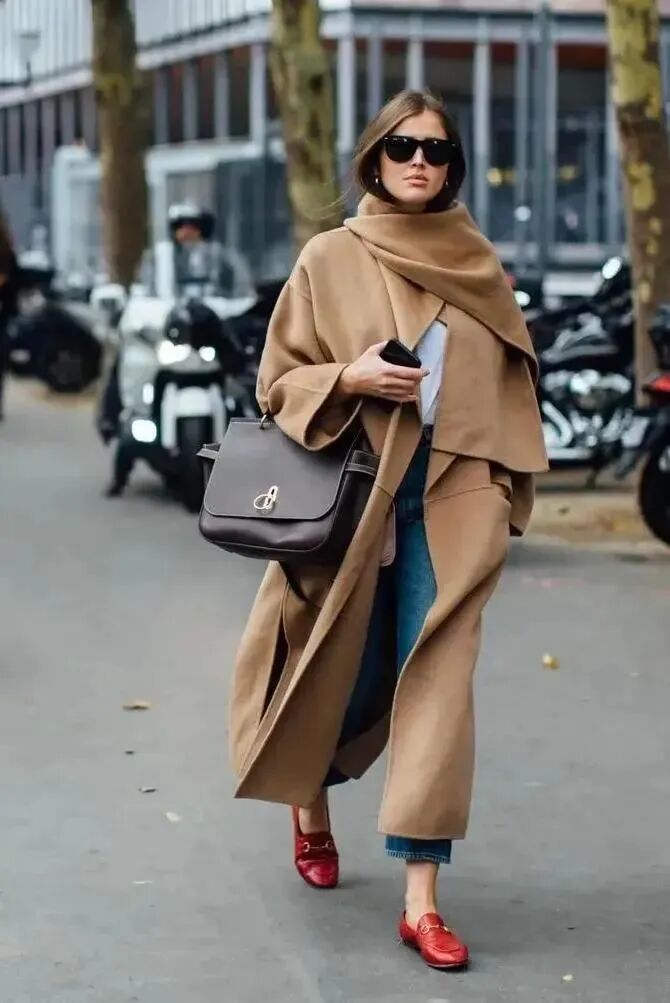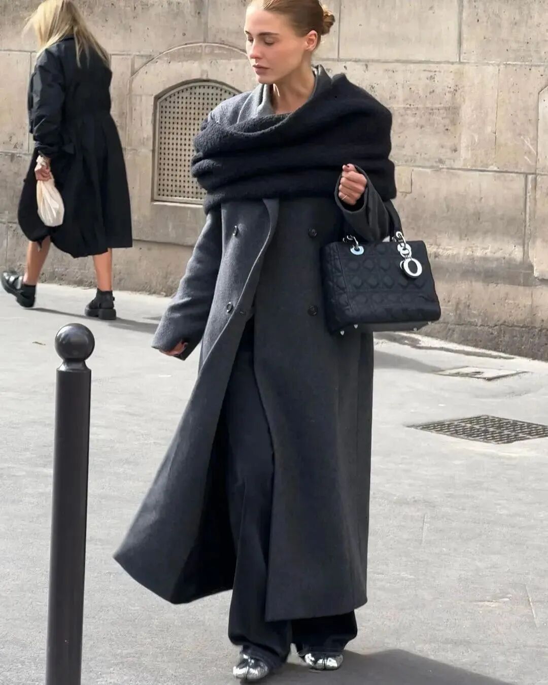 羊绒大衣与围巾的组合更是王炸,最简单的缠绕式裹一圈,即可打造出电影感的质感氛围。