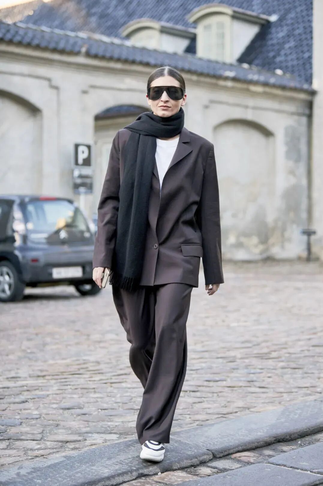 羊绒围巾的搭配场景亦比想象中还要丰富,可以配《亿万》old money风格的挺括西装。