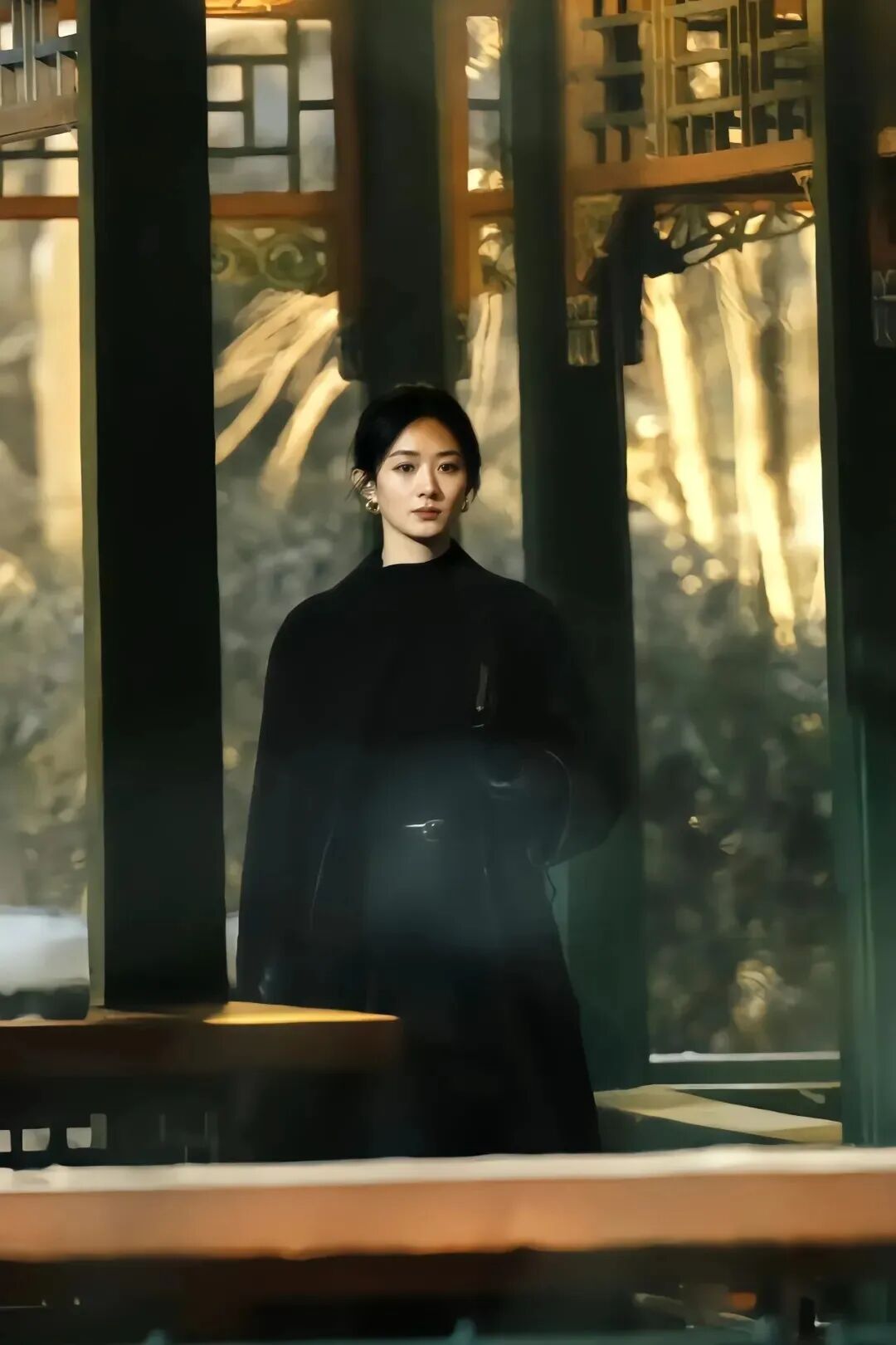 《乔妍的心事》中,赵丽颖的黑色羊绒大衣造型更有一种格调之外的清冷疏离,很有故事感。
