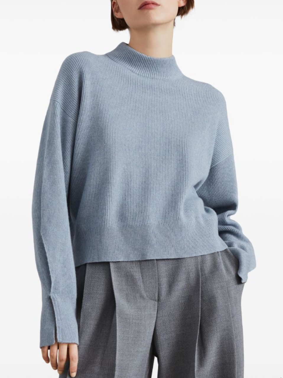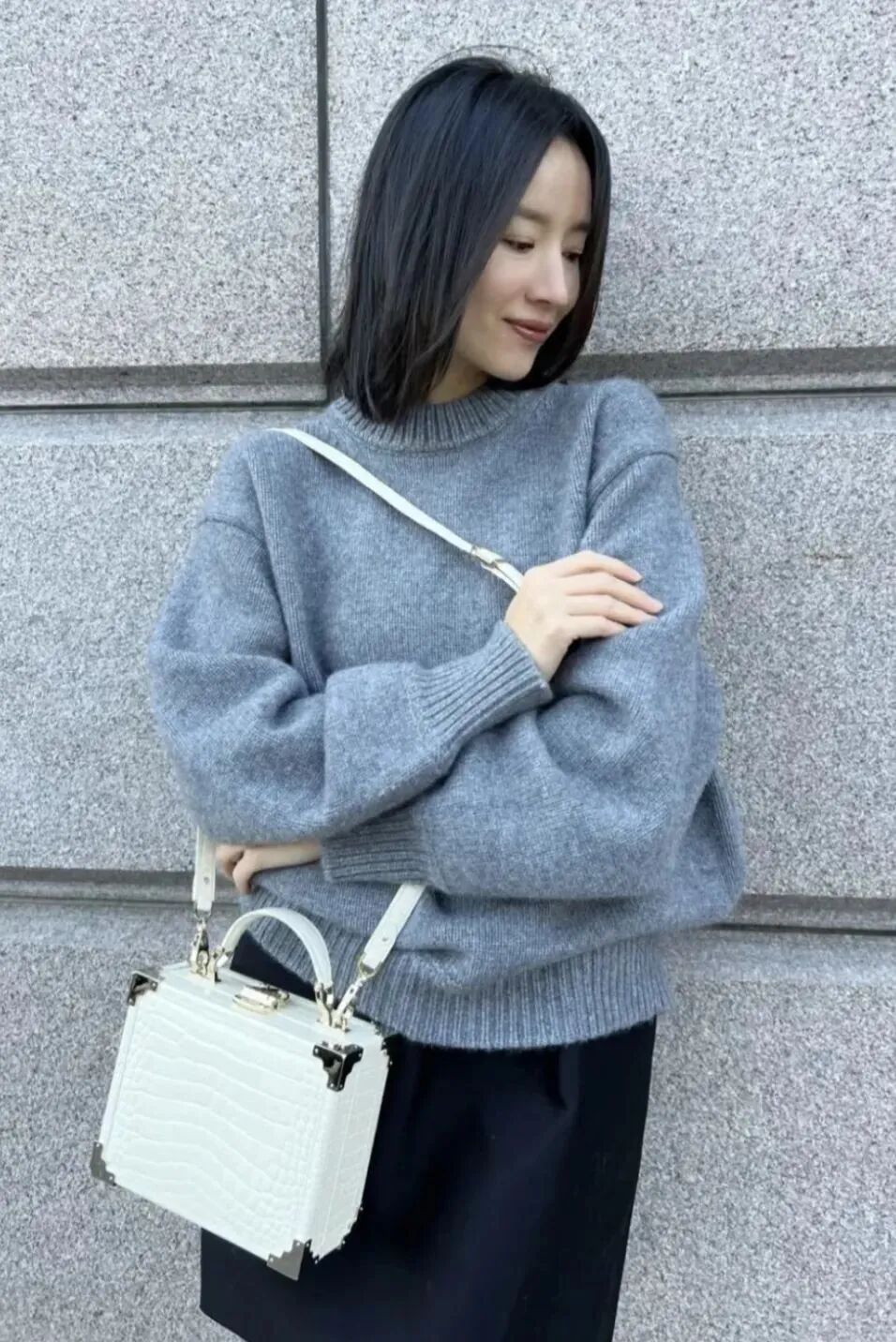 对于喜欢干练风格的姐妹们来说,基础款的羊毛衫会更好驾驭一些。另外分享一个小技巧,长度在臀线以上会显得更加轻盈时髦哦~