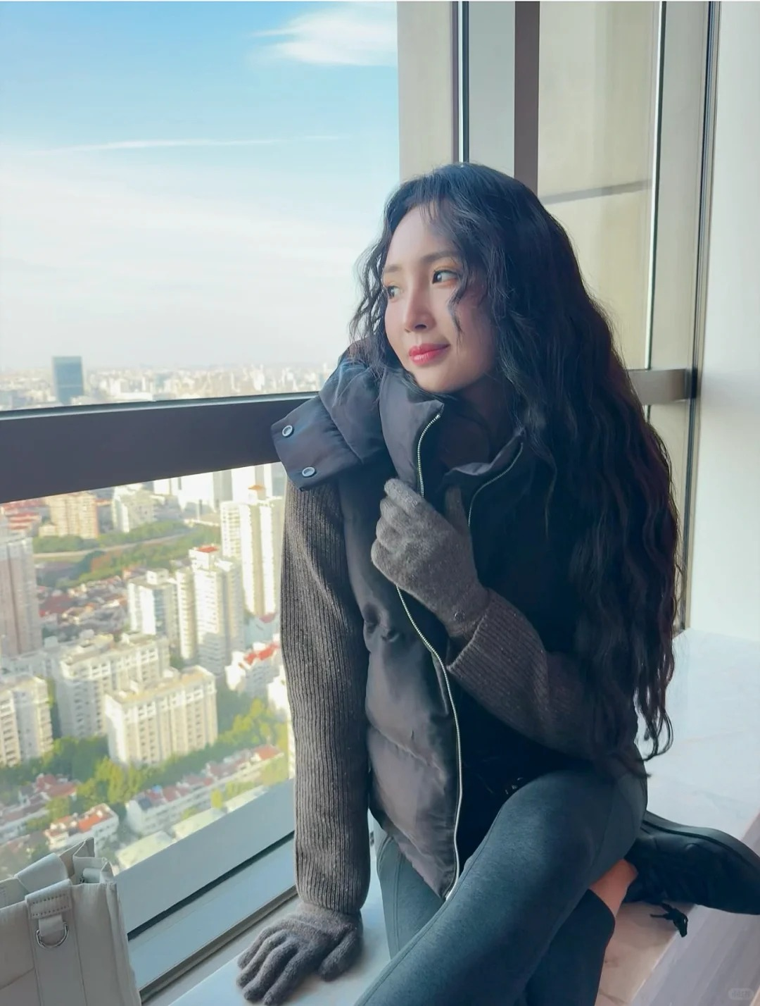 王紫璇的羊绒穿搭亦很值得借鉴,用lululemon山羊绒开衫内搭无袖小背心,同系列山羊绒手套是点睛之笔,再加上毛绒耳罩,秋冬立即灵动起来~