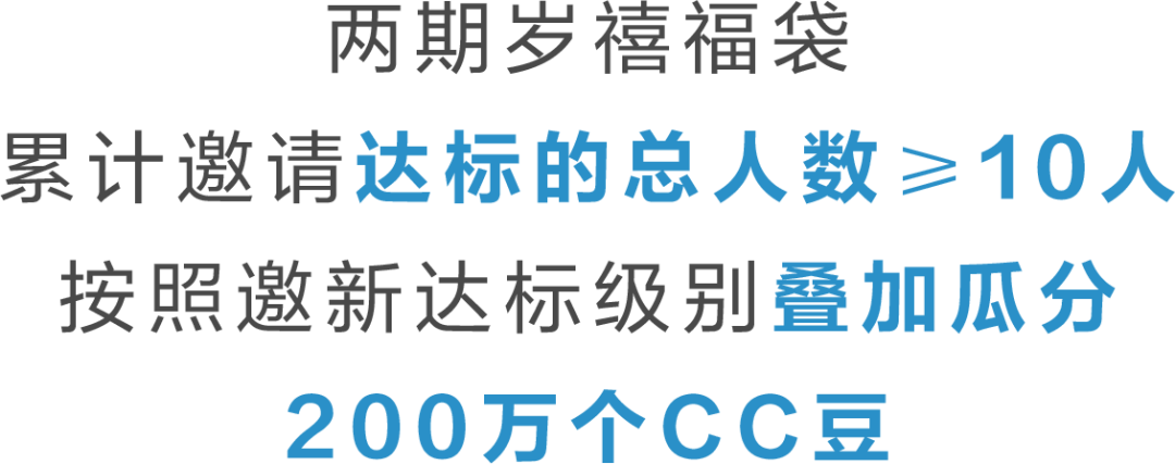 【相伴有礼】“岁禧”福袋:客户邀请好友参与活动,每期福袋结束后,系统判定达标档次,7个工作日内发放奖励。