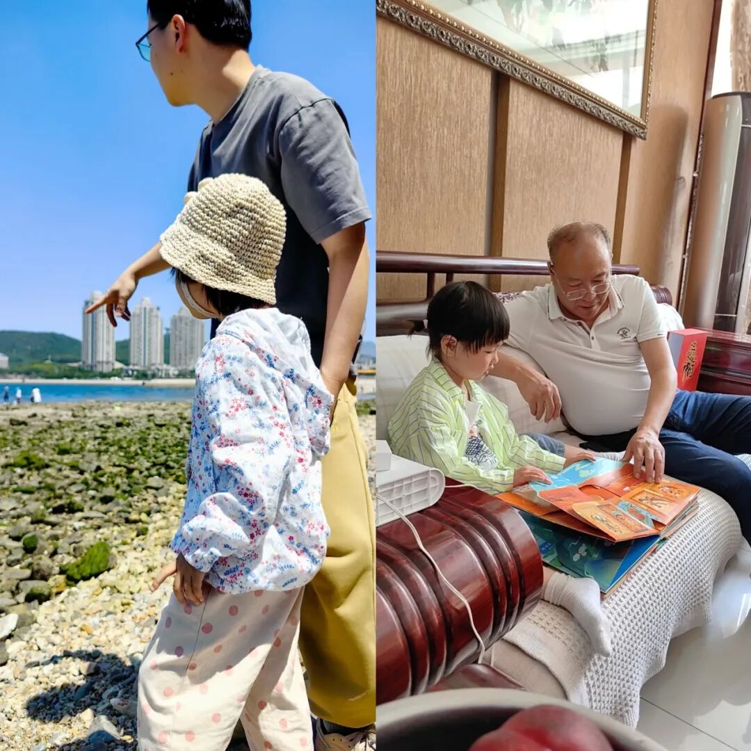 小时候,爸爸骑在二八大杠的自行车上,我坐在前边车梁上,被爸爸宽厚的肩膀环绕;结婚时,爸爸在婚礼上紧张又认真的发言;生孩子时,爸爸在医院半夜坐着睡觉,给我最温暖的陪伴;还有把我的孩子高高举起,轻轻放下,耐心陪伴的瞬间。
