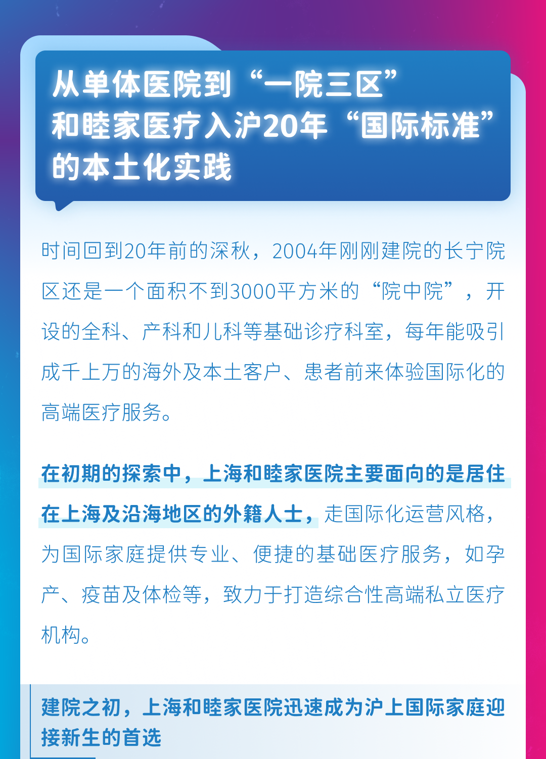 上海和睦家20周年系列报道 | 二十载医如既往,忆往昔再创辉煌
