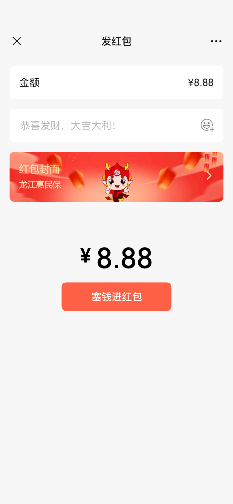 2.打开发红包界面,前往“红包封面”,选择“龙江惠民保”专属红包封面,即可使用!