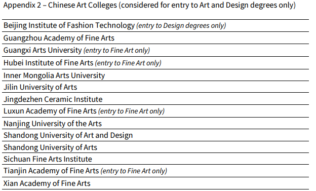 以下是爱丁堡大学艺术设计类附表的14所新增院校名单: