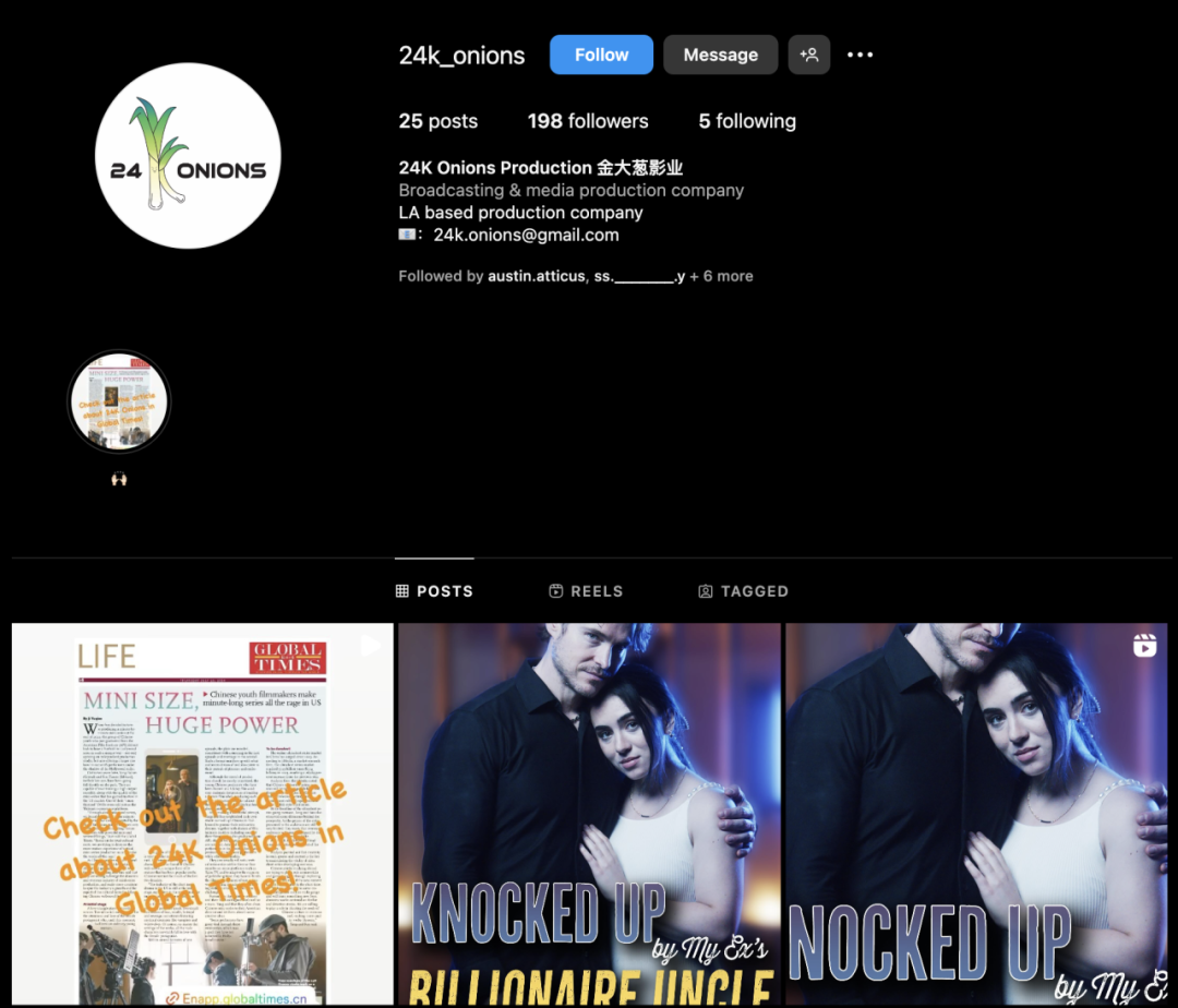 4月,毕业于全美第一电影学院AFI的Edward和Crystal成立了短剧工作室24K Onions。作为海外最早承接短剧制作的工作室之一,24K Onions已参与制作了21部海外短剧,并发掘了如Griffin Blazi、Nick Ritacco、Kyra Wisely等多个爆款演员。