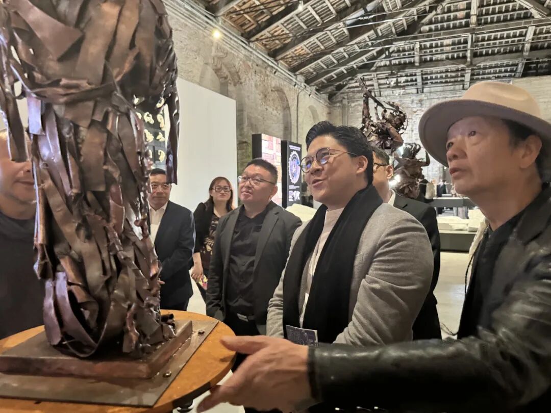 2024年4月20日,丝路视觉李萌迪董事长陪同香港文体局霍启刚先生参观威尼斯双年展中国馆,陪同霍启刚先生听取策展人的策展内容,领略中国文化的当代演绎。