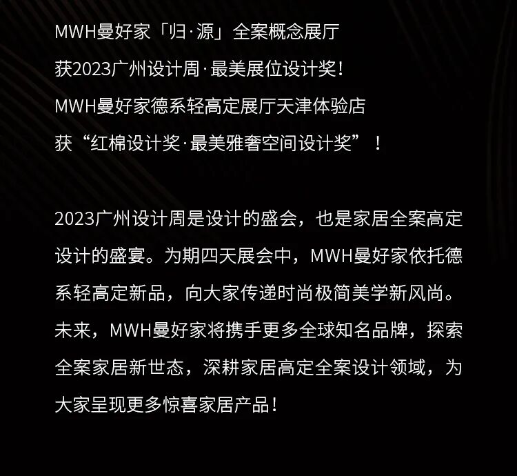 文章内容来源于公众号:MWH曼好家全屋定制,点此可查看原文,内容版权归相关企业所有,本网站仅供交流学习。若涉及版权问题或存在侵权情况,请及时与我们联系,我们将第一时间进行删除处理。