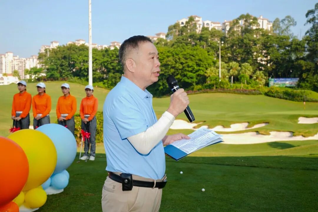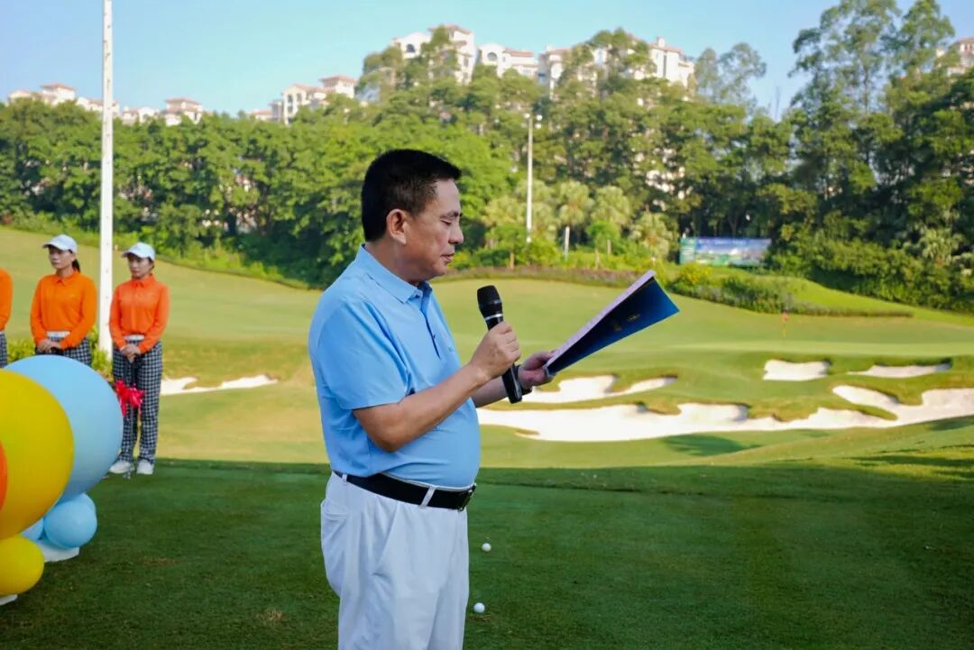 开球仪式上,广东潮商国际高尔夫球队队长林喜七代表球队致辞,林队长对出席活动的各位领导、嘉宾表示热烈的欢迎,衷心感谢大家对球队长期以来的关心与支持,感谢感谢阅宝黄金、和兴资本对本次赛事的大力支持。球队成立8年来,共举办了近百场赛事,通过挥杆,分享生活,链接资源,是广东省潮商会的品牌项目。祝愿所有的参赛者赛出水平,赛出风采。