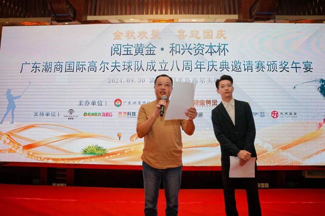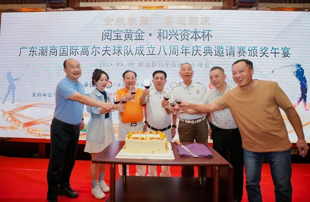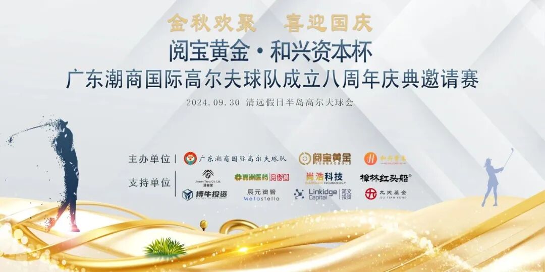 2024年9月30日,金秋九月,大地流金,喜迎中华人民共和国成立75周年,由阅宝黄金、和兴资本、广东潮商国际高尔夫球队作为主办单位,璟参堂、嘉州医药片仔癀、樟林红头船、尚浩科技、博牛投资、简文投资、辰元资管、九天基金作为支持单位共同举办的“阅宝黄金·和兴资本杯”广东潮商国际高尔夫球队成立8周年庆典活动,在清远假日半岛高尔夫球会顺利举行。