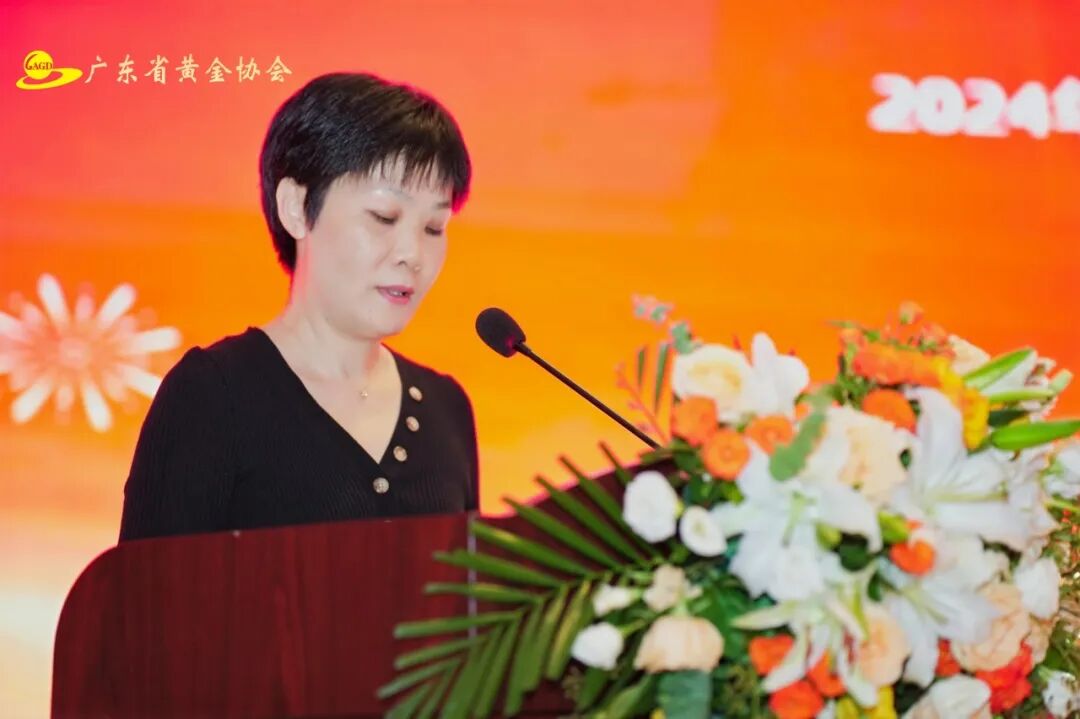 紧接着,广东省黄金协会创会会长徐静幽女士为阅宝黄金集团颁发了广东省黄金协会会长单位这一荣誉。作为会长单位,阅宝黄金集团深知肩负着更为重大的社会责任。阅宝黄金集团也将以更高的标准严格要求自己,充分发挥会长单位的引领作用和示范效应,展现出会长单位的责任和担当,积极为行业的蓬勃发展贡献力量。与其他会员企业携手共进,共同开创广东省黄金珠宝行业的辉煌未来。