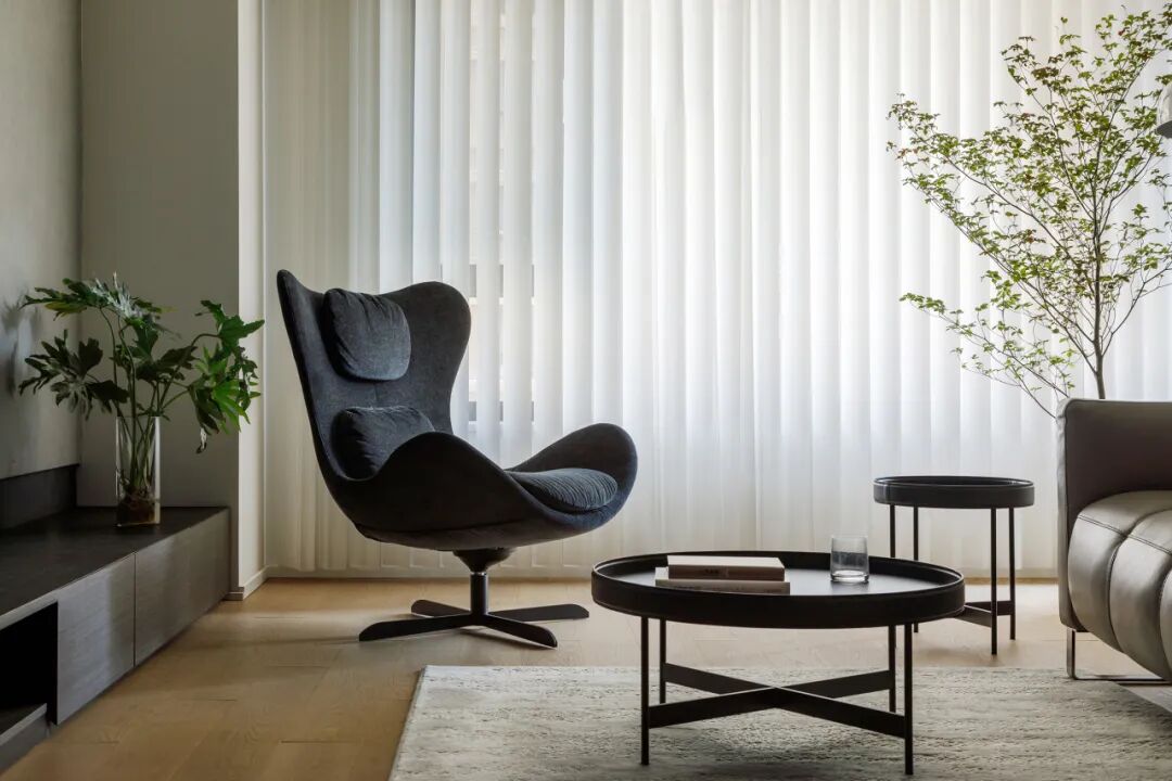 社区内楼间距较近,窗前便没用布帘或纱帘,而是选择了可调节开合角度的垂直百叶。倚坐在窗边看书、打盹、回信息...阳光能暖暖的晒进来,又足够私密~