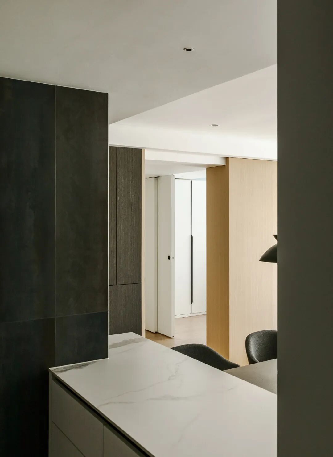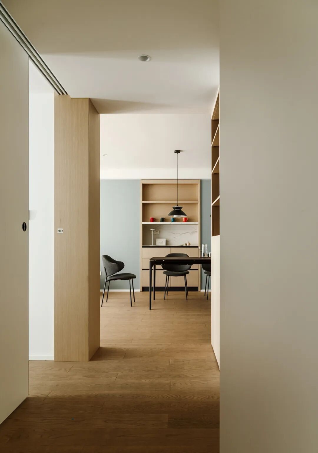孩子住校时,打开移门,就成了夫妻俩办公、阅读的书房。仍是开放、有轻社交性的,能与身处客餐厅的家人交流~总之辗转腾挪,也能衍生为接待朋友的茶室、活动室、临时客房...且切换流畅。