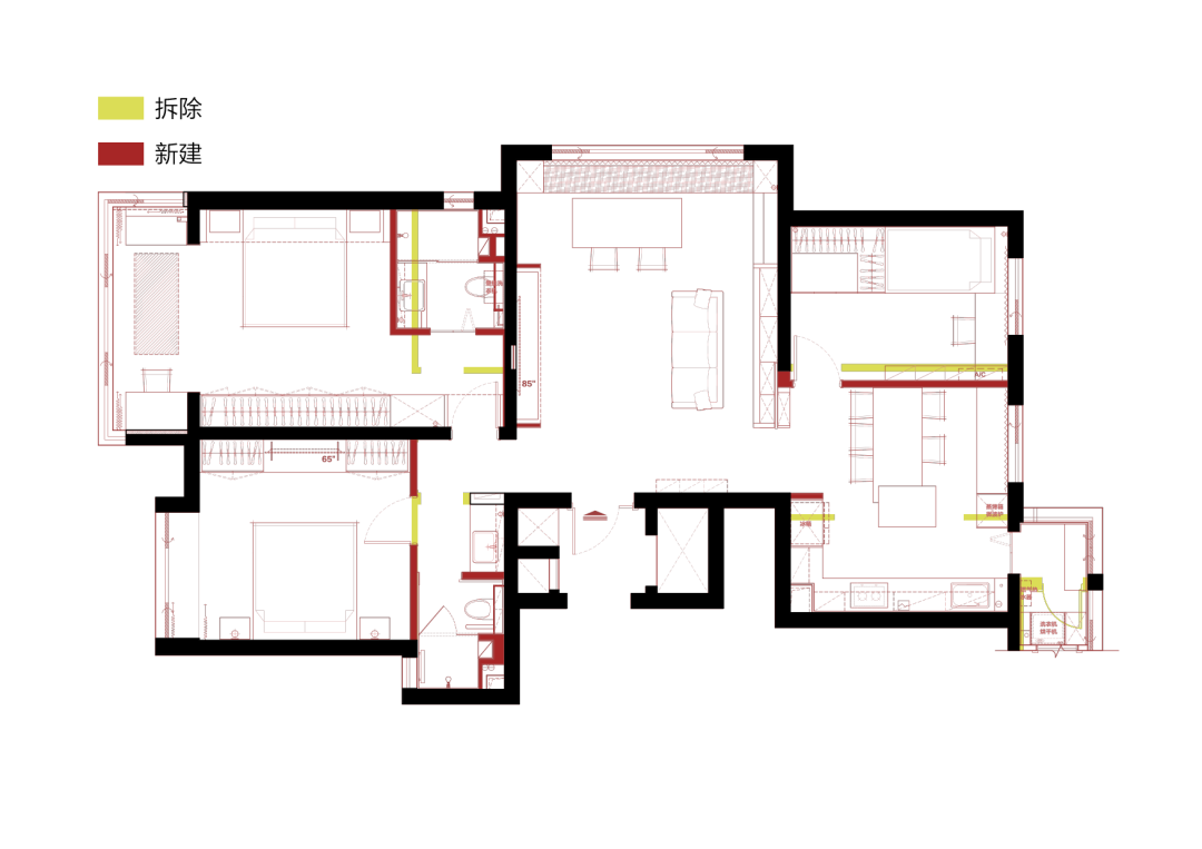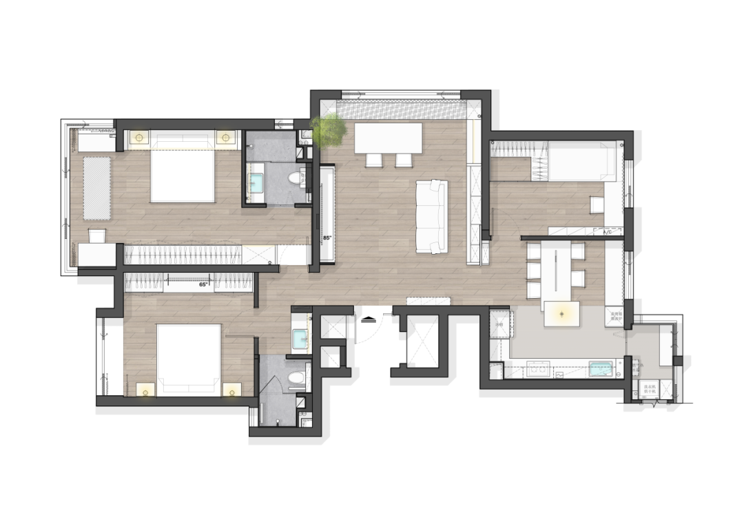 初相识,屋主秦女士介绍生活状态,对家人满是称赞:“我俩工作较忙,长辈给了极大帮助,孩子自我管理能力也强。虽忙碌,但大家方向一致,步履不停。”随着设计深入,我们见证了一段令人生慕的三世同堂生活:一家五口都是不急不徐的性格;彼此惦念着'你'爱读书写字、'我'爱摆弄花草、'他'爱收藏乐高...