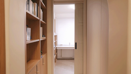 右侧设置一个储藏间,用于存放罗女士儿子的衣服、软水机、行李箱等大型物品,保持家中的整洁。