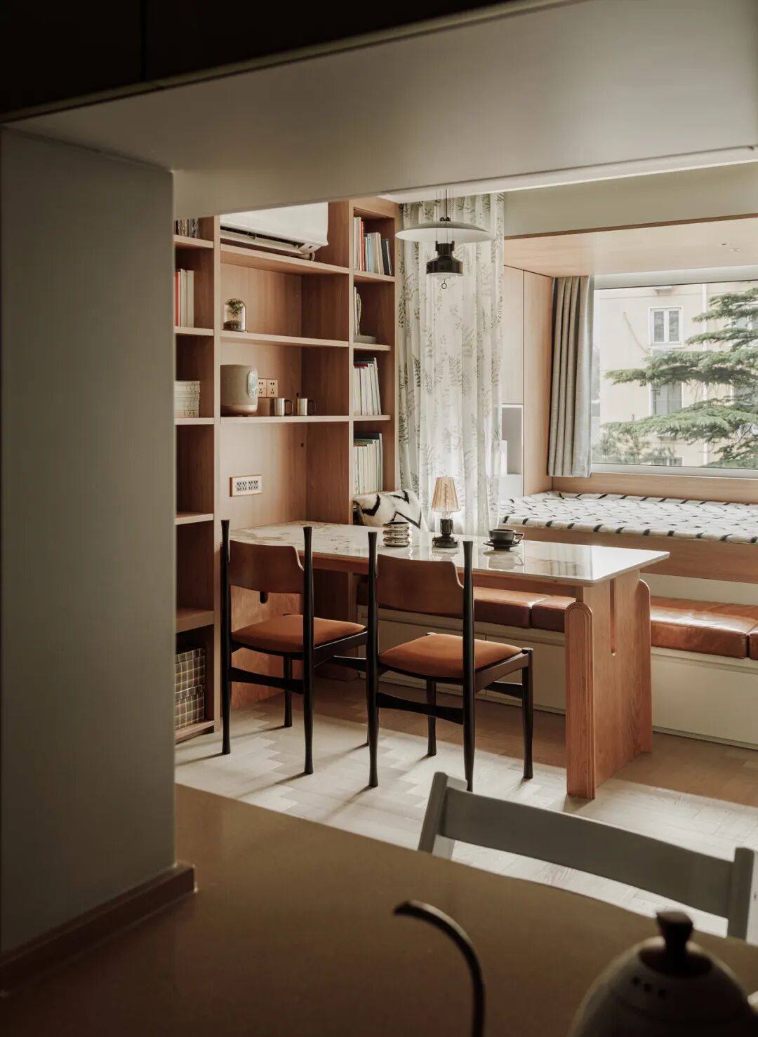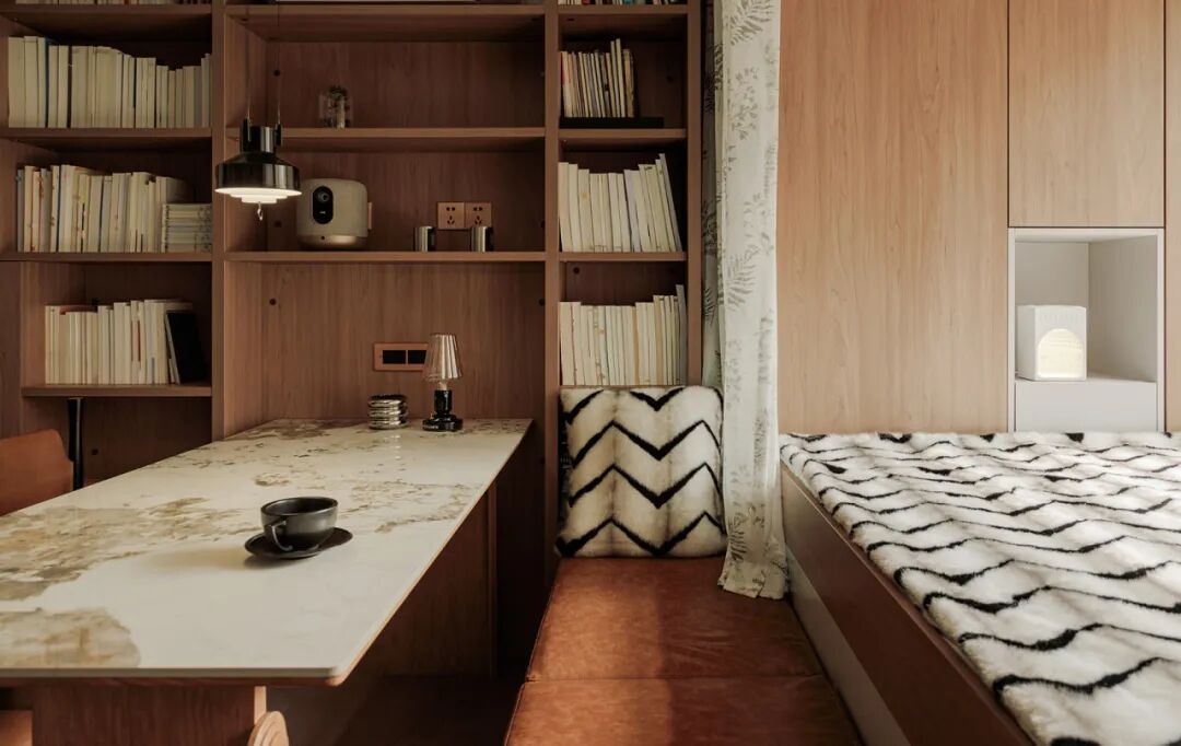 先说说这房子吧,位于北京东城•东黄城根南街,建筑面积58.3㎡,实际使用面积就47㎡。这个小窝虽然建筑面积不大,但每一寸空间都被精心设计和巧妙利用。设计师在深入了解屋主的生活习惯和审美偏好后,决定以复古风格为基调,运用暖棕木色和奶油白色为主色调,营造出一种既典雅又温馨的氛围。