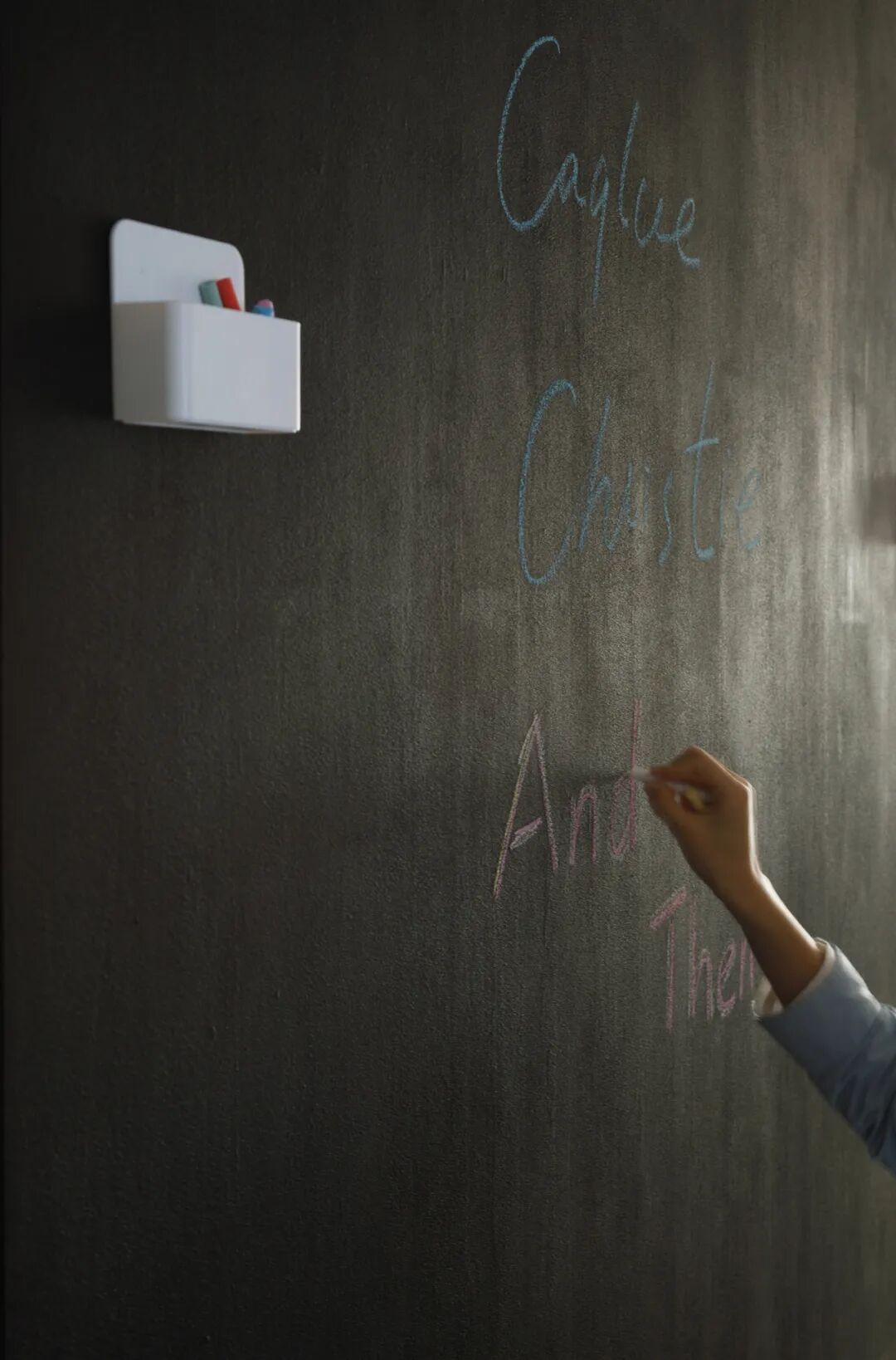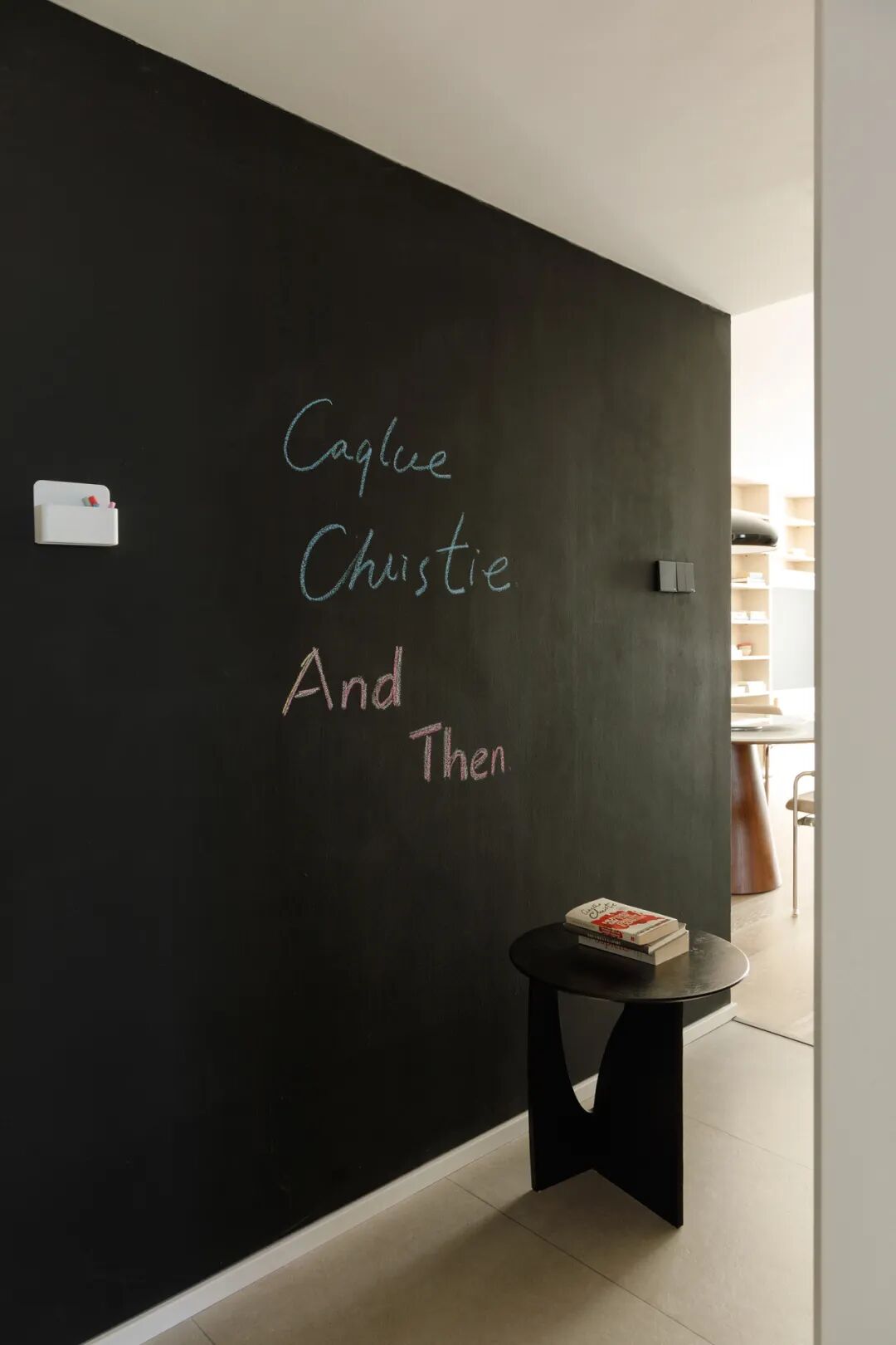 再变有趣:左侧墙面涂刷了黑板漆,可写、可画、可磁吸~Ms.L在这儿为孩子们听写、做口算;一起创造五彩斑斓的画面;贴上《今日菜单》...发生着许多有爱互动。
