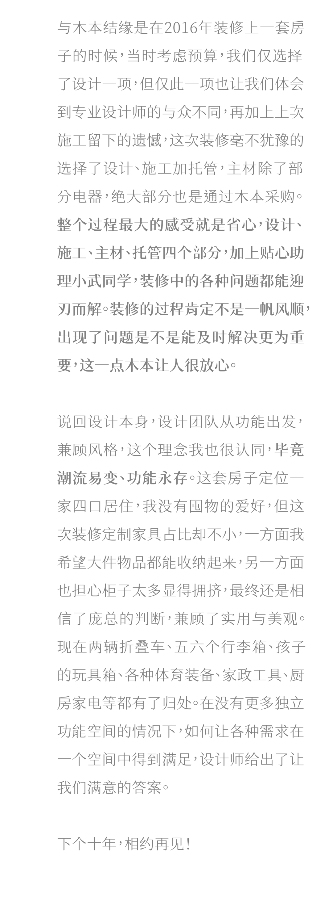 日久天长,爱不必天天有声。一起布置的橱柜、一起坐着的沙发、一起读的书本,会替彼此温柔地告诉家人:“时时刻刻爱你们”。