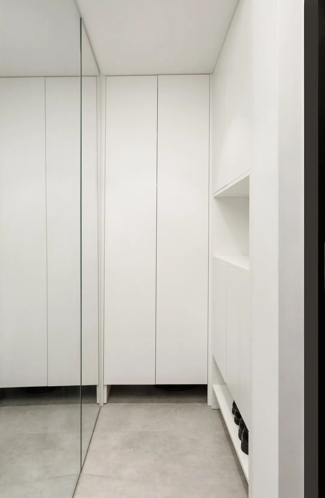 △ 一面柜门设计为穿衣镜,延伸视觉
