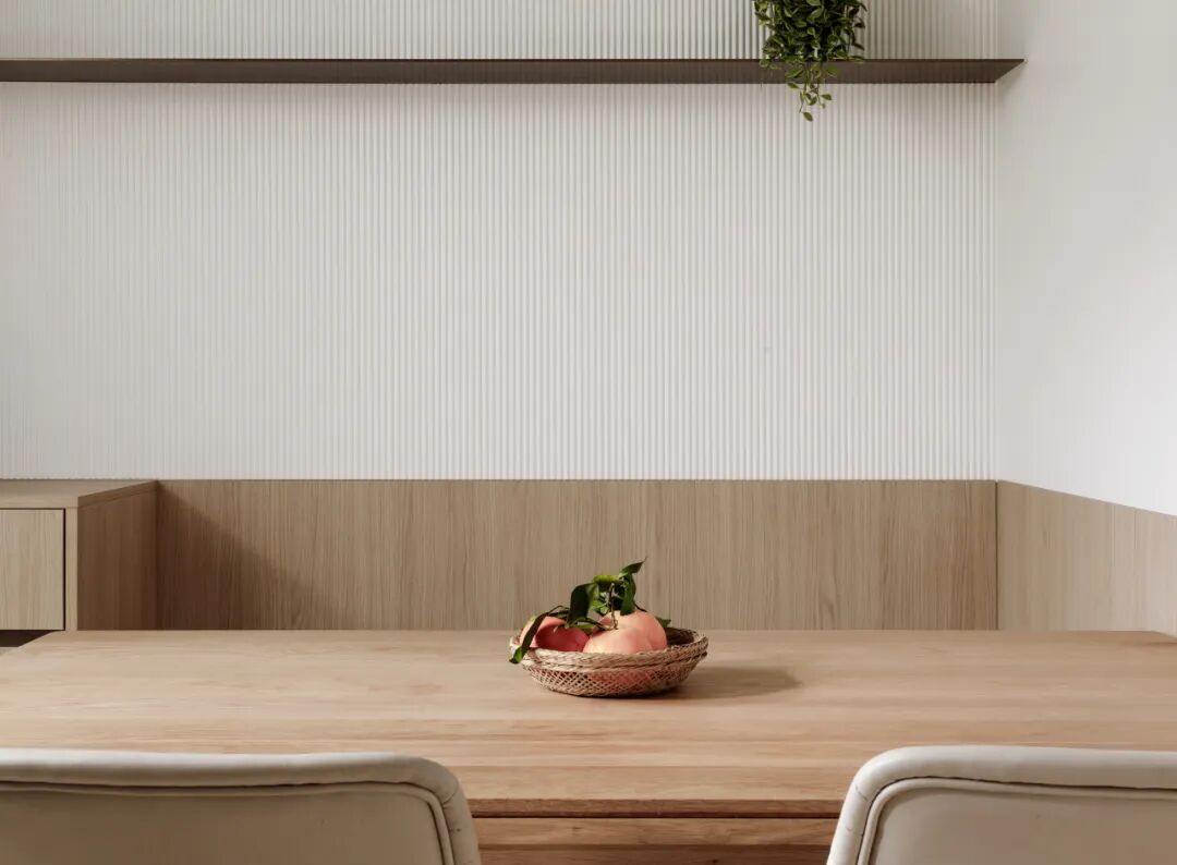 想淋漓尽致的发挥出光的美,整个房子用色很克制,白色和木色清新松弛。阳台更换了系统窗,通向小院的门也改为玻璃材质。搭配百叶帘,光灵动梦幻,没有任何灼热感。