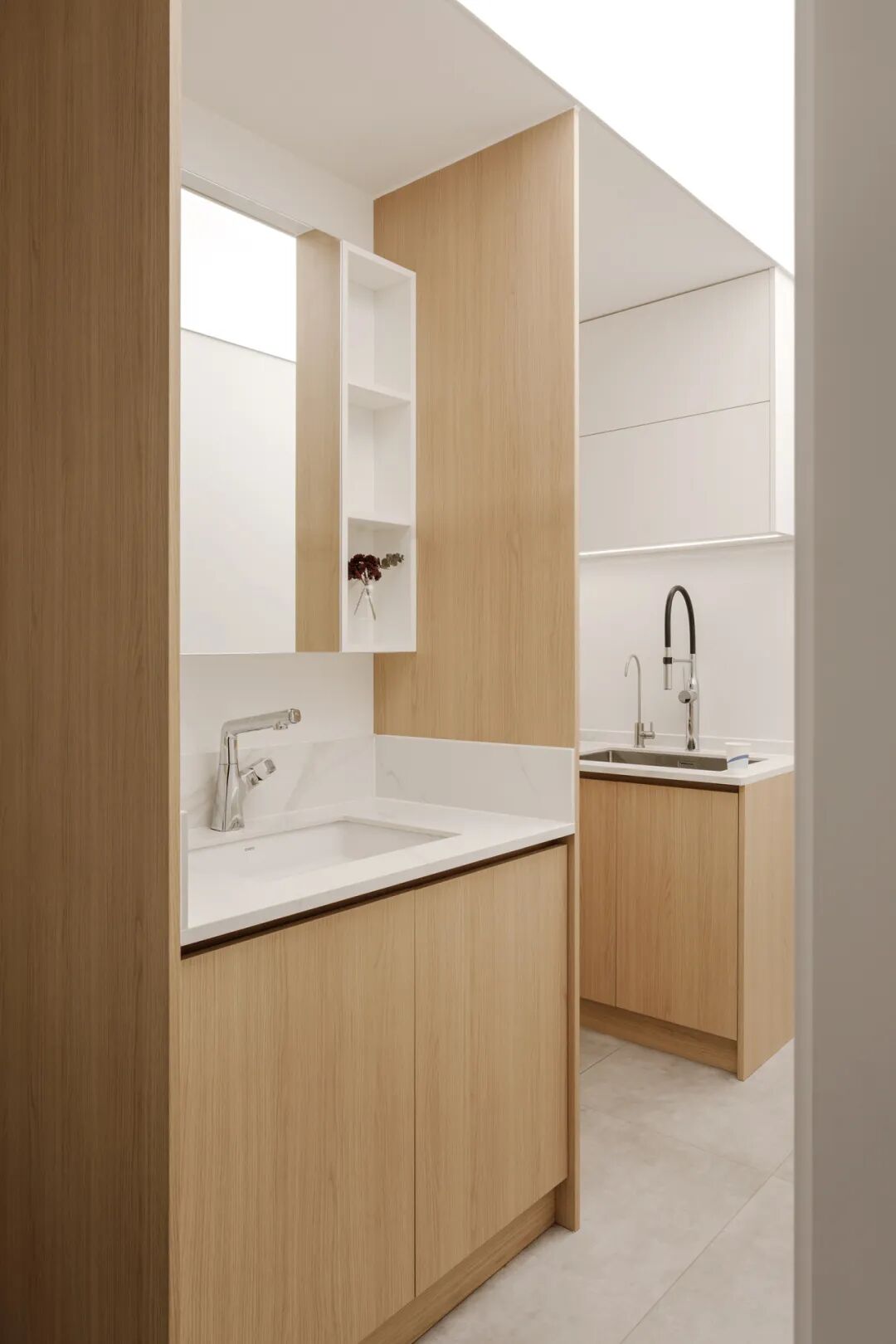 △ 节省空间又美观的做法:用板材代替隔断墙,嵌入洗手台。