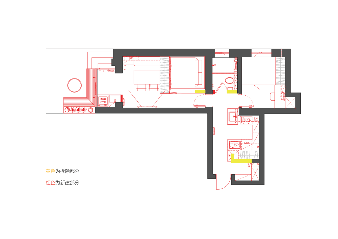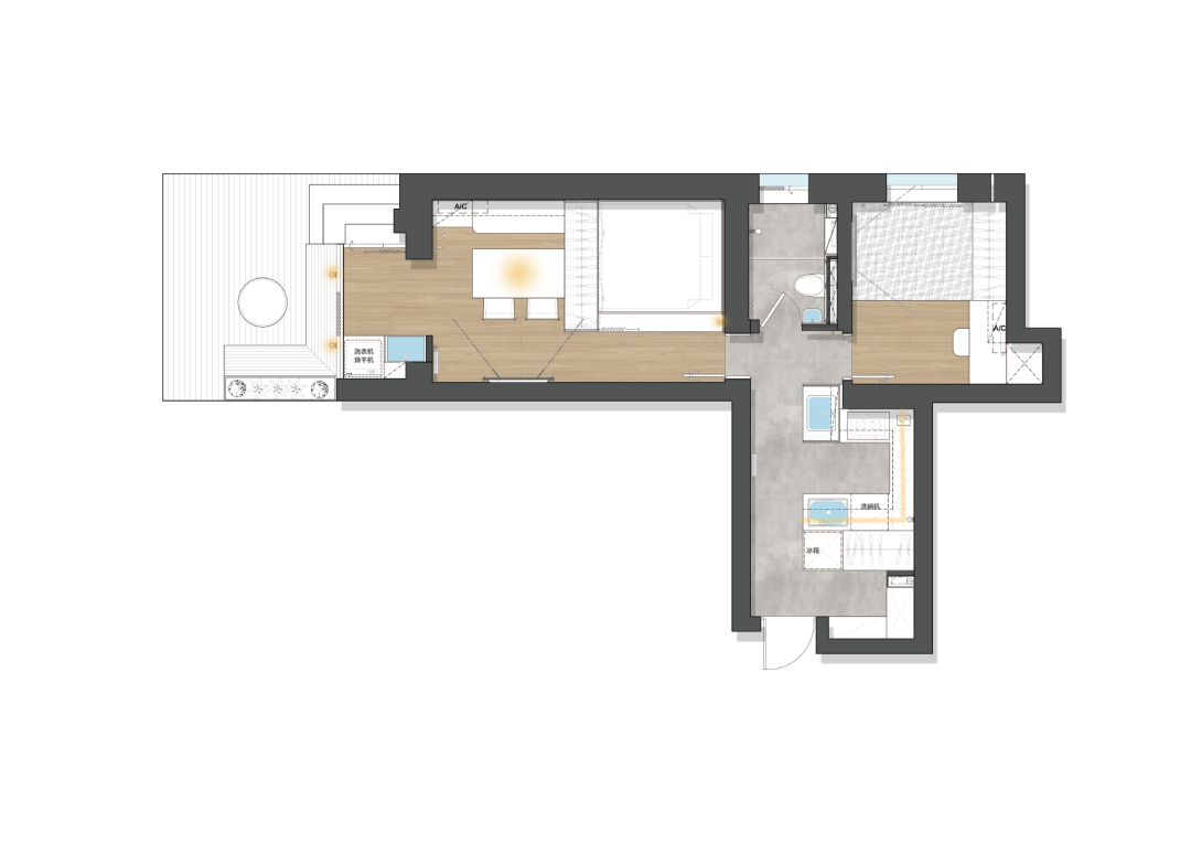 △ 利用转角空间嵌入白色冰箱,作为厨房起点。