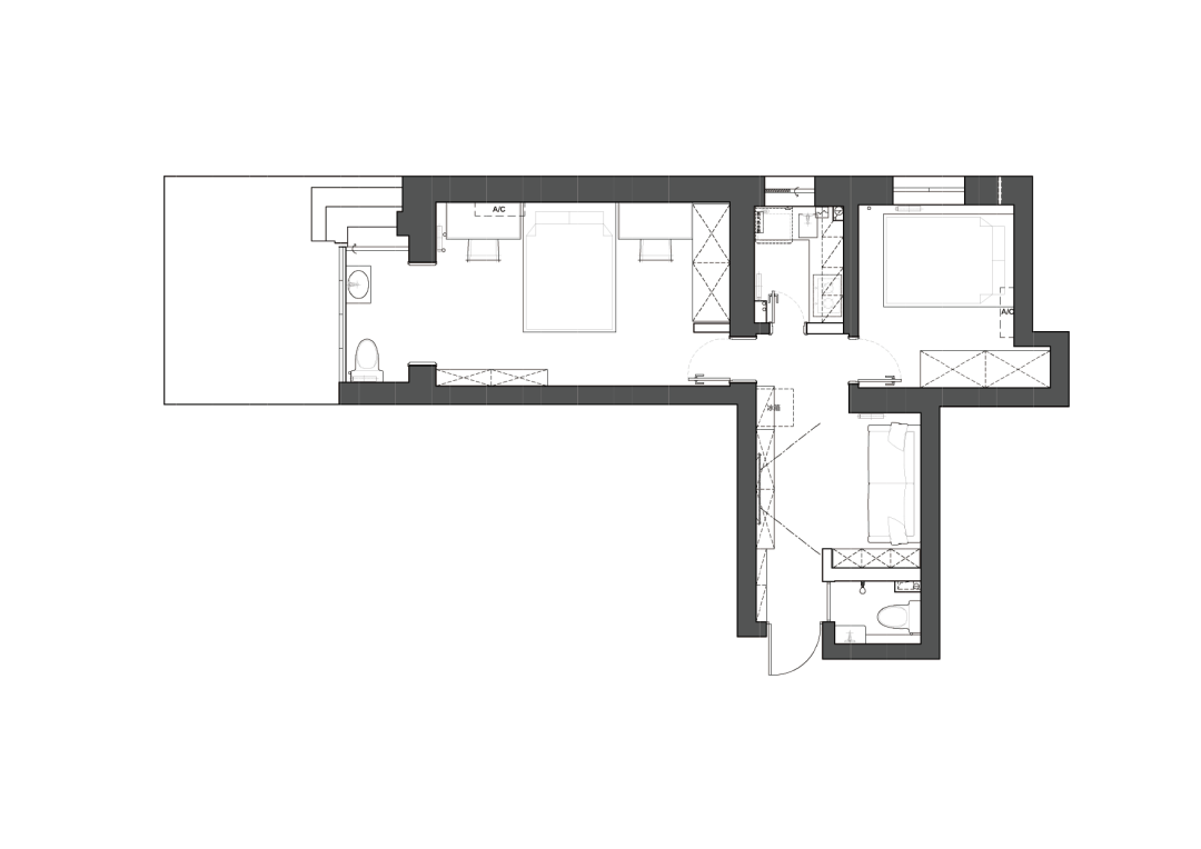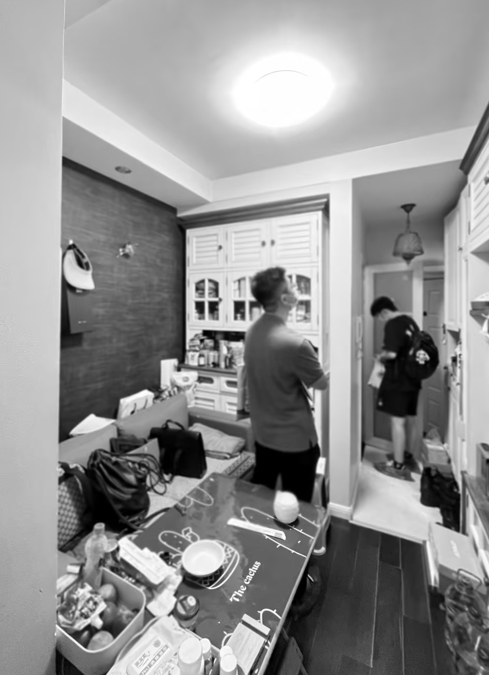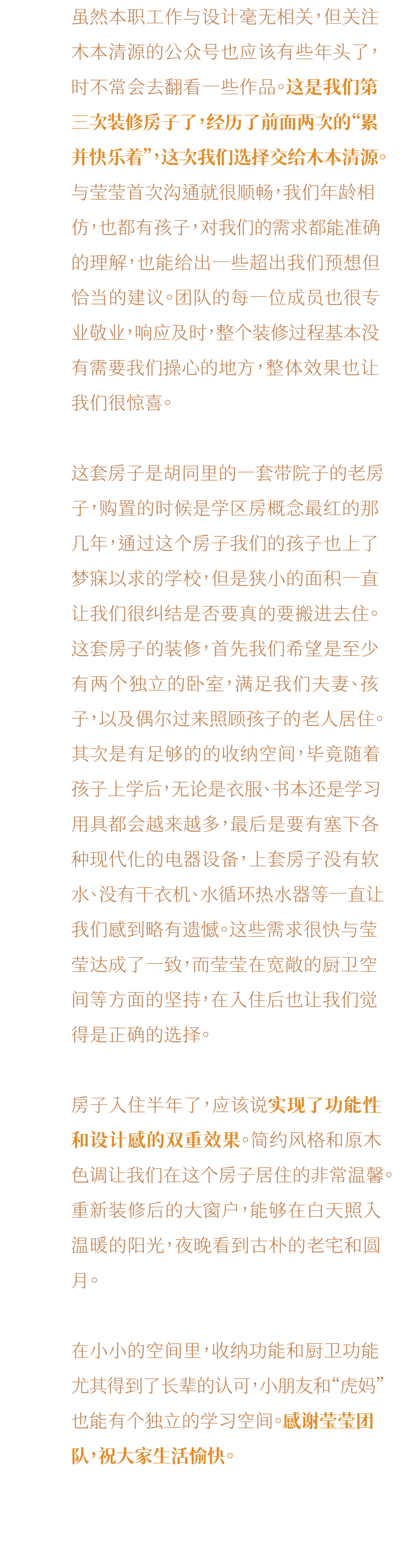 这处胡同里的学区房,面积40㎡,“高龄40岁”。典型的“手枪户形”,空间窄长。因入户门挨着卫生间,一进屋昏暗、潮湿扑面而来,令人不自觉的心情低落。想安置好三代五口人的生活,要从新布局。老房几乎全是承重墙,管道也难调整...无法大拆大改,是挑战!我们却有些激动期待:它很有想象空间。窗外,青砖灰瓦高树枝。