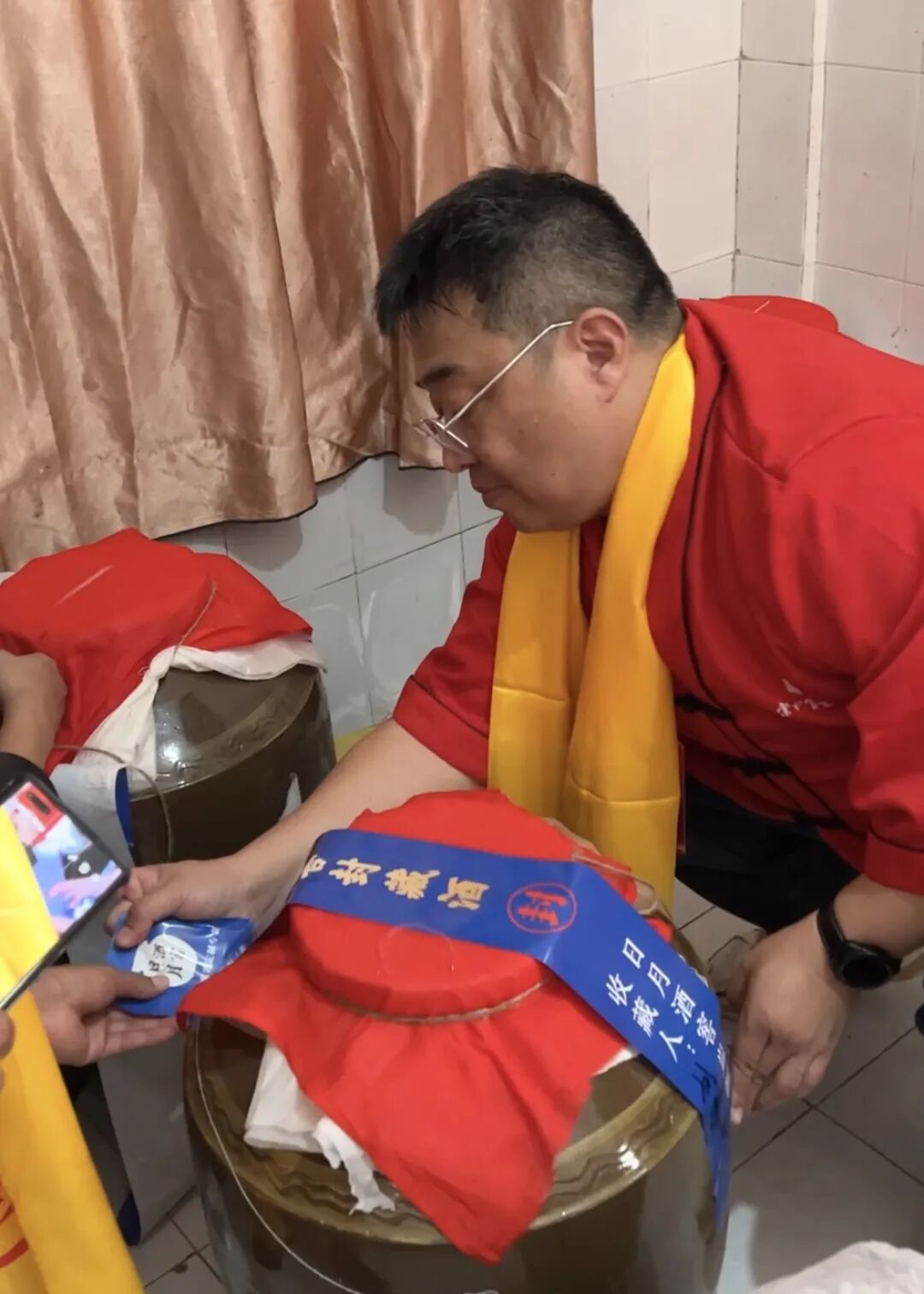 所有现场参与封坛的客户,均可以每坛领取一瓶茅台美酒,亲手倒入日月酒窖百斤酱酒坛中,共同封藏陈酿。