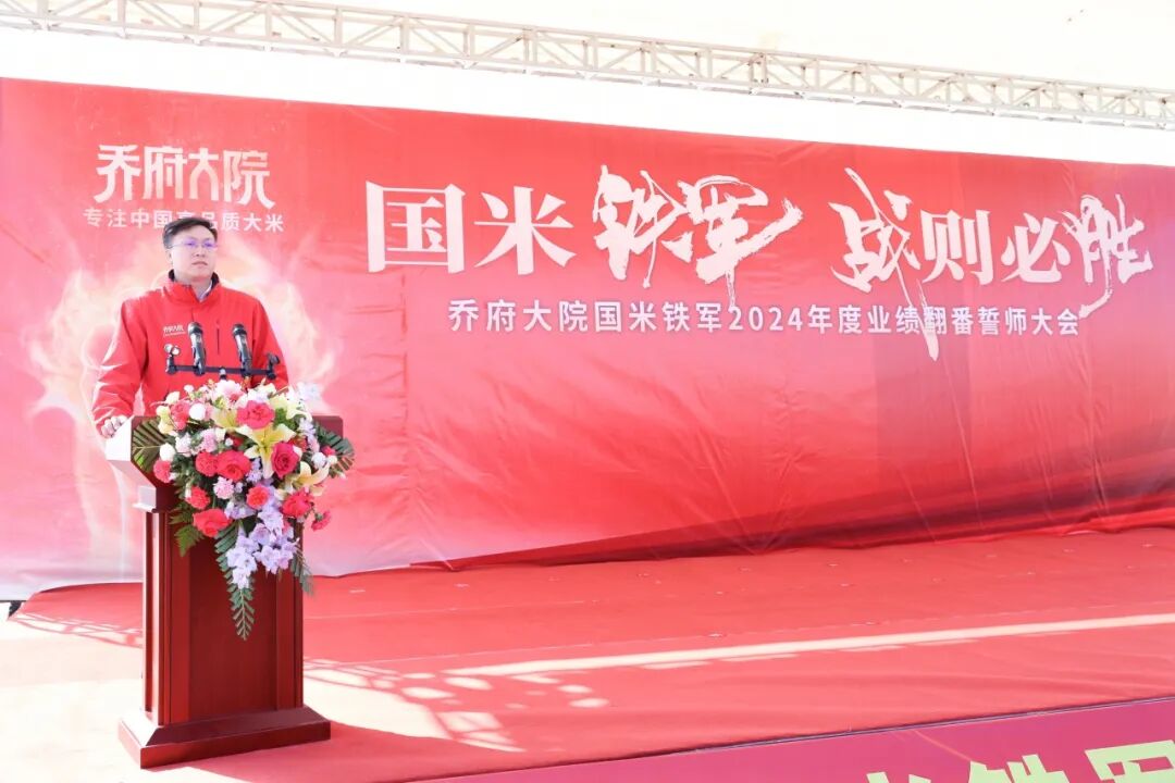 董事长乔文志在讲话中指出,本次大会对打造中国高品质大米、助力乡村振兴、推动共同富裕具有十分重要的意义。他在讲话中慷慨激昂地动员道:“全体员工要把思想和行动统一到2024年业绩翻番的目标上,让国米的胜利旗帜在全国各地高高飘扬!”