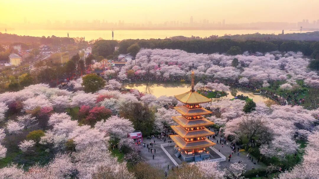武汉还有晴川阁、汉口江滩、青山公园等小众赏樱地